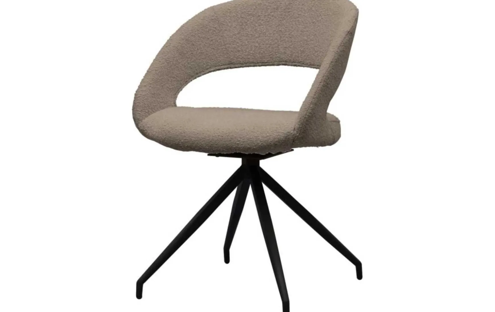 Hübsch! Dieser Esszimmerstuhl ist ein attraktiver und einzigartiger Esszimmerstuhl mit einer coolen Sitzfläche, einem trendigen Bouclé-Stoff und einem drehbaren Bein mit schwarzem Finish. Einzeln schön, aber in Kombination fantastisch!