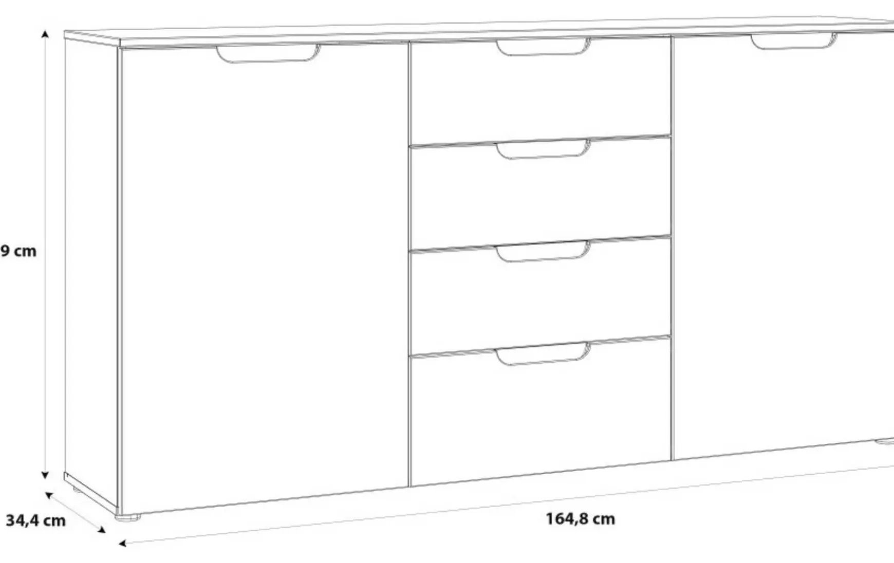 - 4 Schubladen und 2 große Türen