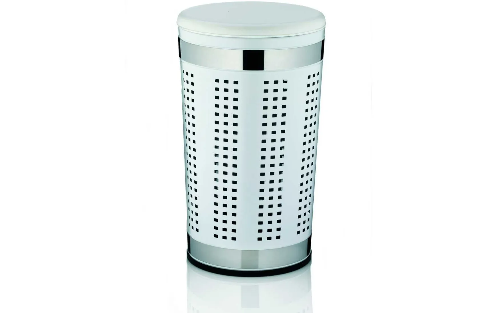Die Wäschetruhe ist aus beschichtetem Metall und hat mit einer Höhe von 60,5 cm viel Platz für Wäsche.