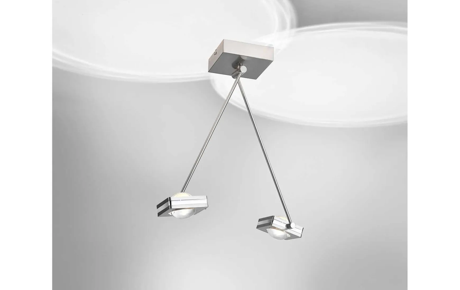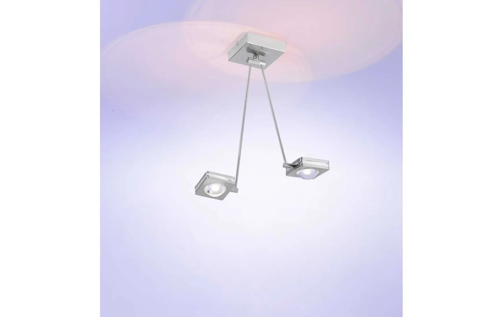Mit dieser LED Deckenleuchte beleuchten Sie Ihre Räume besonders geschmackvoll. Die raffinierte Lampe, die aus Stahl, Metall und Glas besteht, verfügt über zwei um 320 Grad drehbare Spots, die eine individuelle Ausrichtung des Lichtes ermöglichen. Gleichzeitig ist die Zigbee-fähige Deckenlampe über die enthaltene Funk-Fernbedienung dimmbar. Wählen Sie darüber hinaus frei aus, in welche Farbe die Lampe Ihren Wohnbereich tauchen soll: Rot, Grün, Blau oder doch lieber klassisches Weiß? Steuern Sie die Farben der ca. 27 x 82 x 49 cm (BxHxT) großen Leuchte ganz einfach über eine Fernbedienung, eine Smartphone-App oder einen Tablet-PC. Die vier benötigten Led-Boards der Energieeffizienzklasse A++ mit je 3 Watt, 230 Lumen und 3000 Kelvin sind inklusive und nicht austauschbar.
