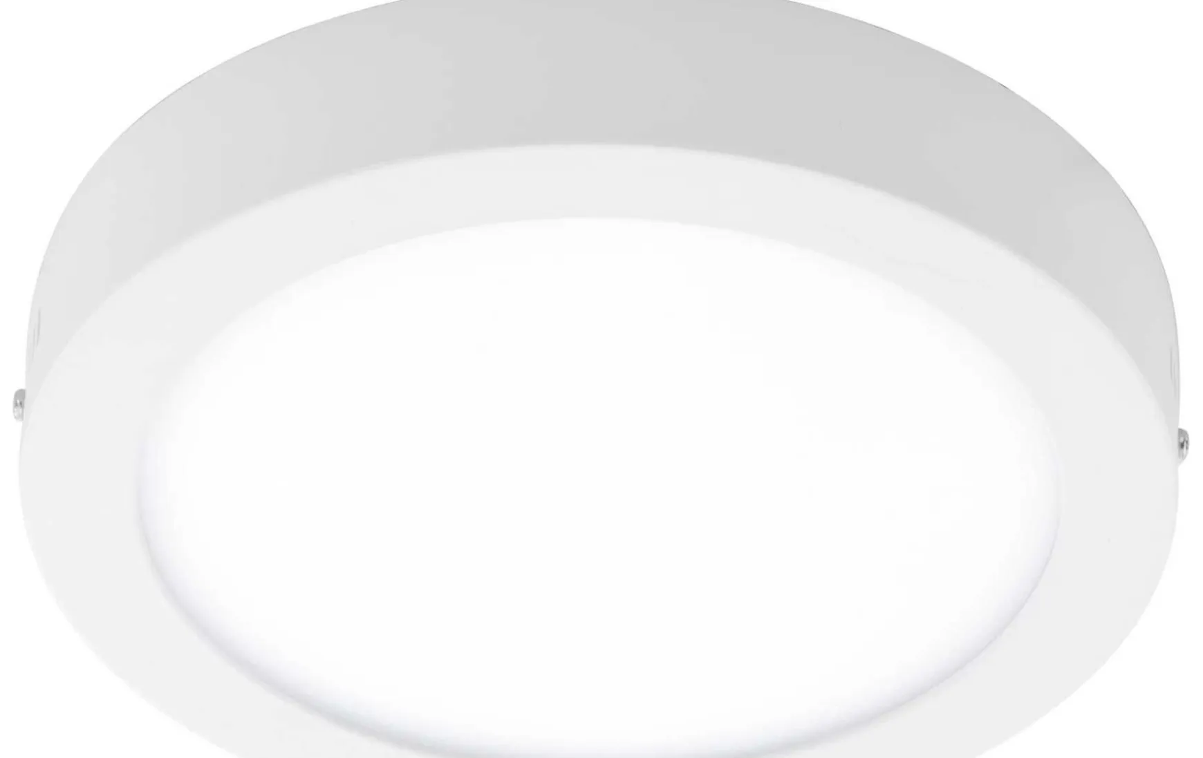 Diese Aufbauleuchte ist aus weißem Metallguss und einer Leuchtfläche aus weißem Kunststoff gefertigt. Sie ist in zwei verschiedenen Größen erhältlich.