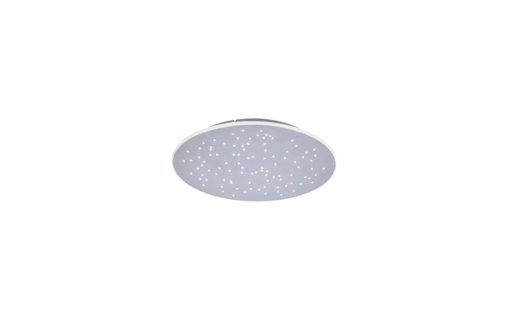 Diese runde Leuchte aus Aluminium die mit ihren Löchern ein Muster aus Lichtpunkten erzeugt und dazu mit einem seitlich umlaufenden leuchtenden Ring besetzt ist – dieses unkonventionelle Bild gibt die LED-Deckenleuchte ab.