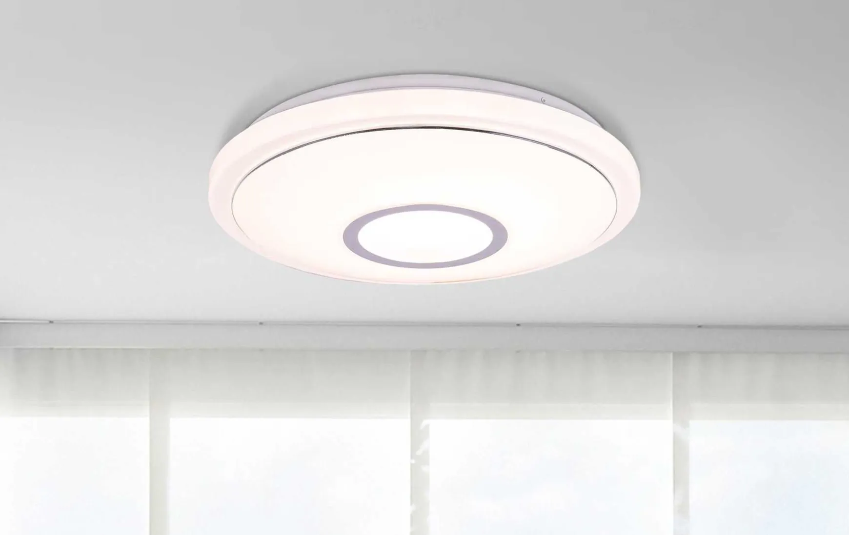 Mittels der inkludierten Fernbedienung und der CCT Funktion kann die Lichtfarbe in mehreren Stufen zwischen angenehmen warmweißen 3000K und 6000K kaltweißem Licht reguliert und fixiert werden.