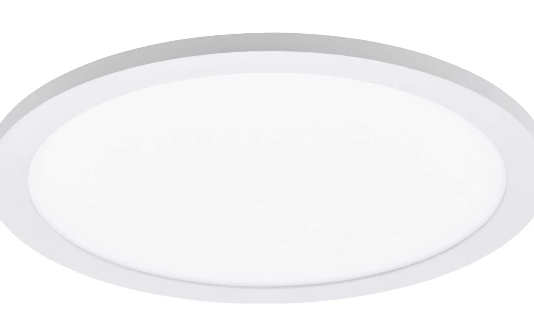 Die LED Deckenleuchte aus dem Smart Home Sortiment connect besteht aus einem runden, weißen Aluminium-Rahmen und einer Leuchtfläche aus weißem Kunststoff.