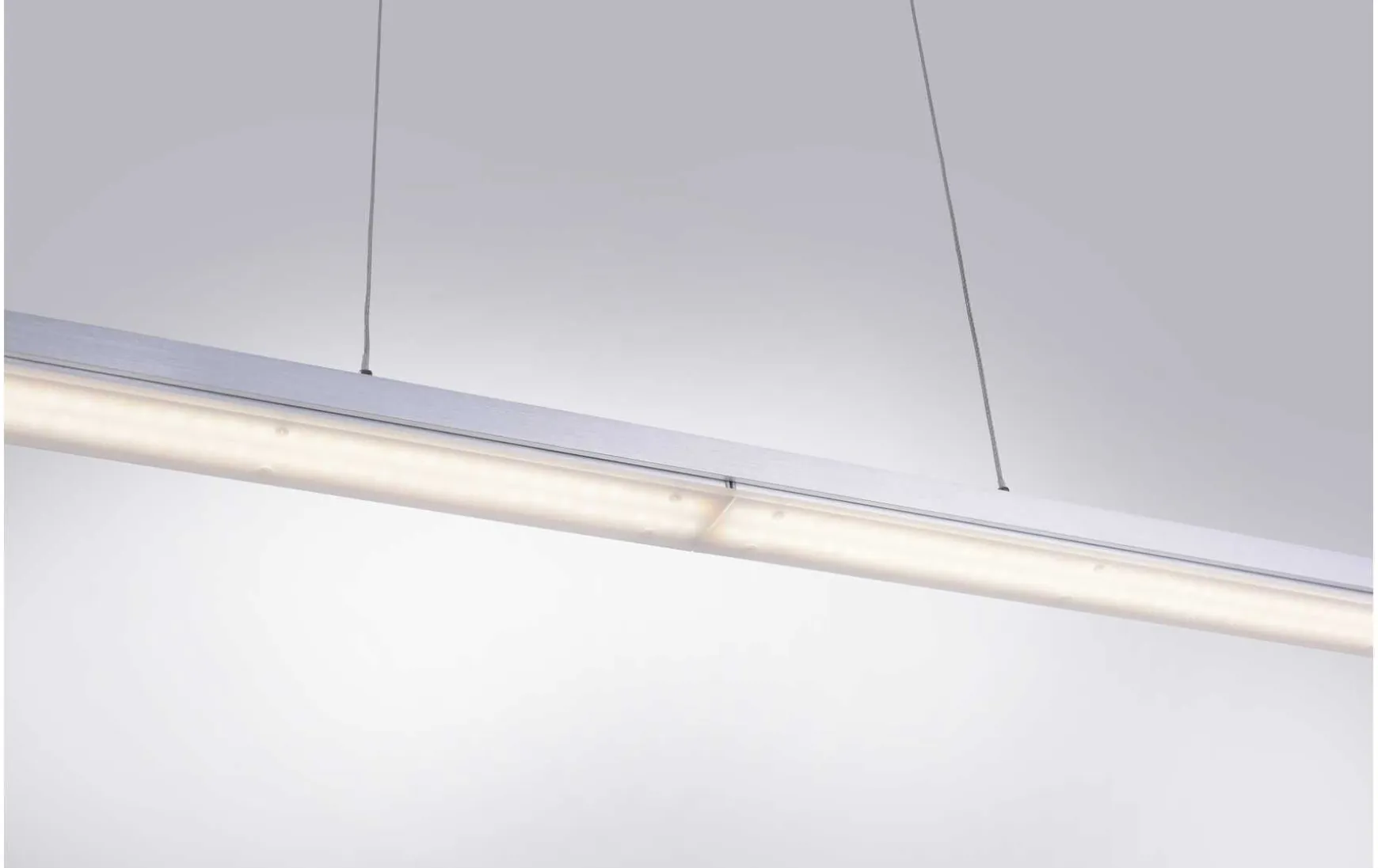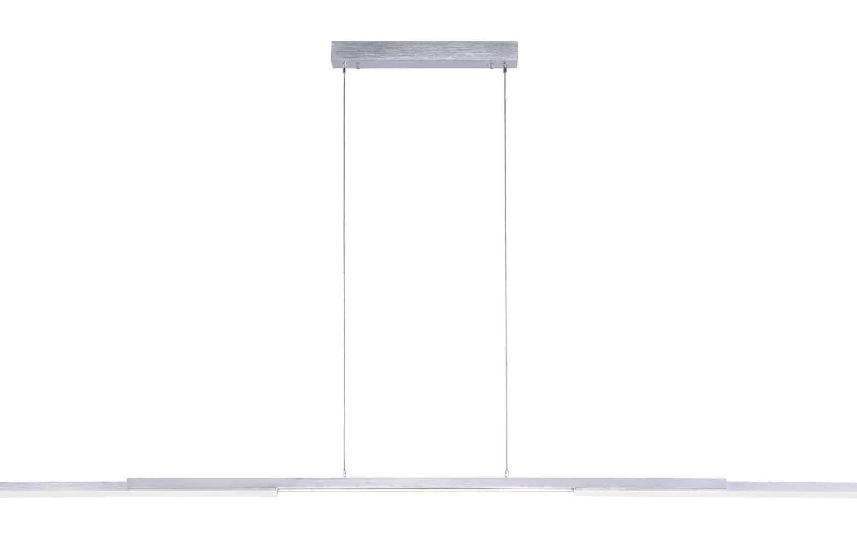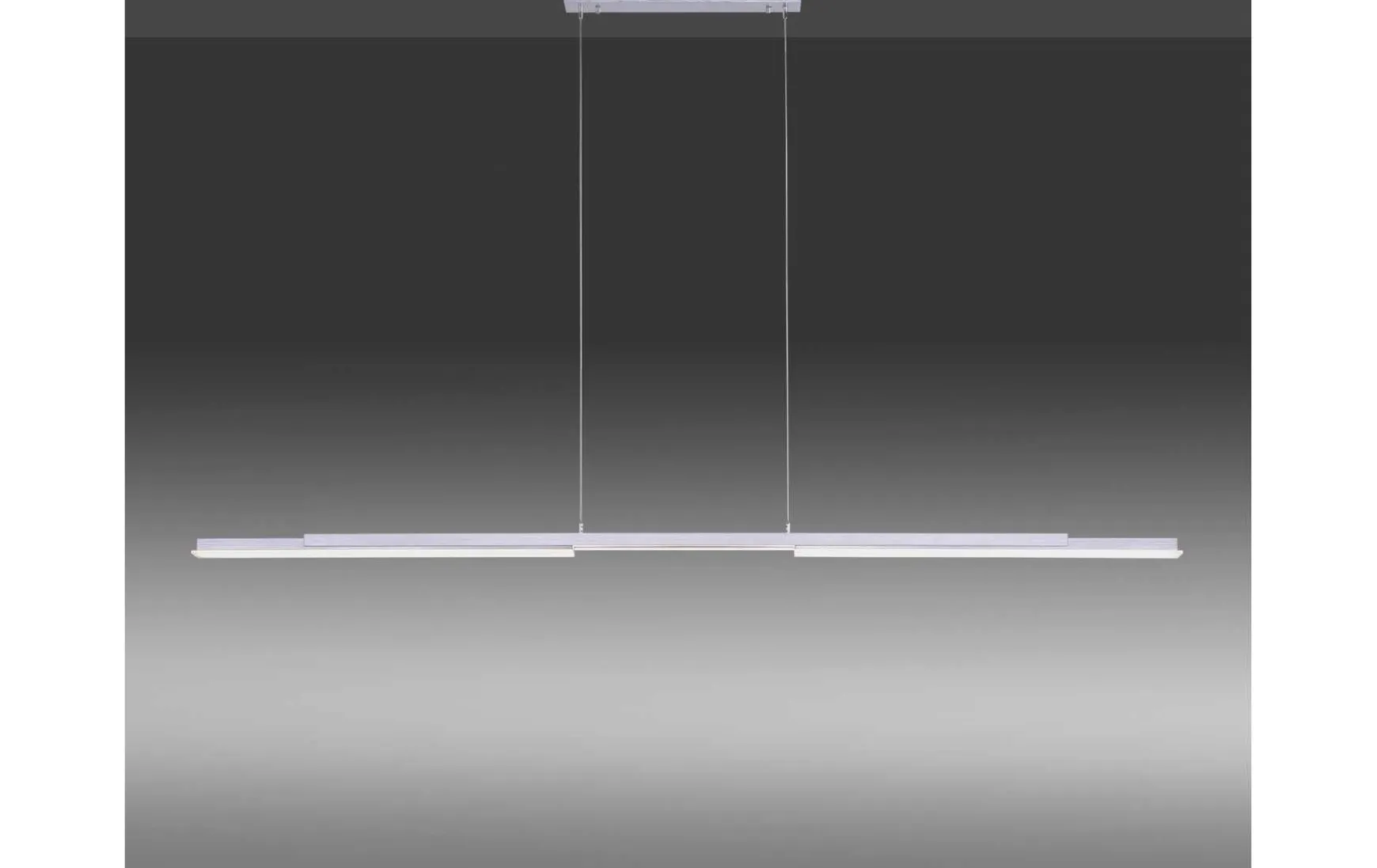 Die Leuchte hat eine Länge von 180,4 cm, eine Breite von 5,5 cm und eine maximale Abhängung von 120 cm.