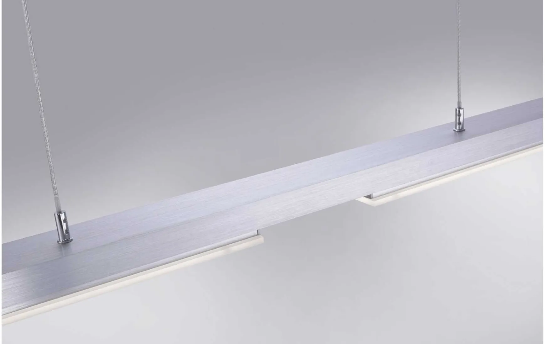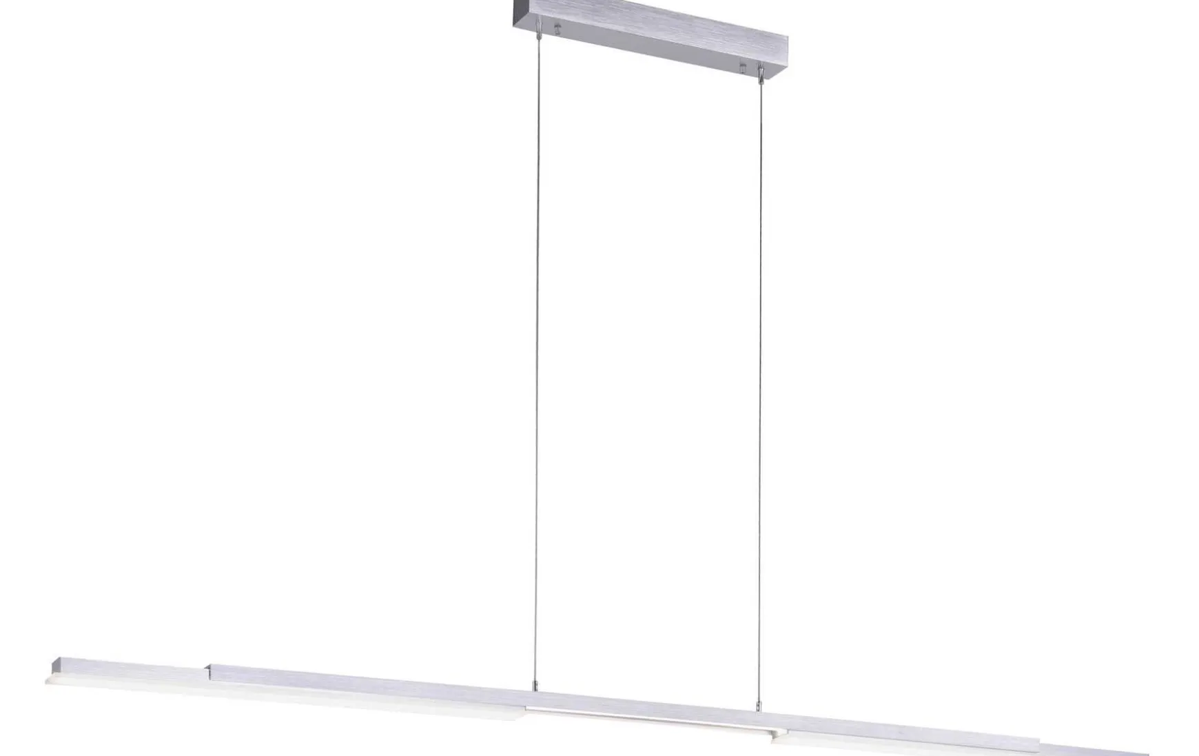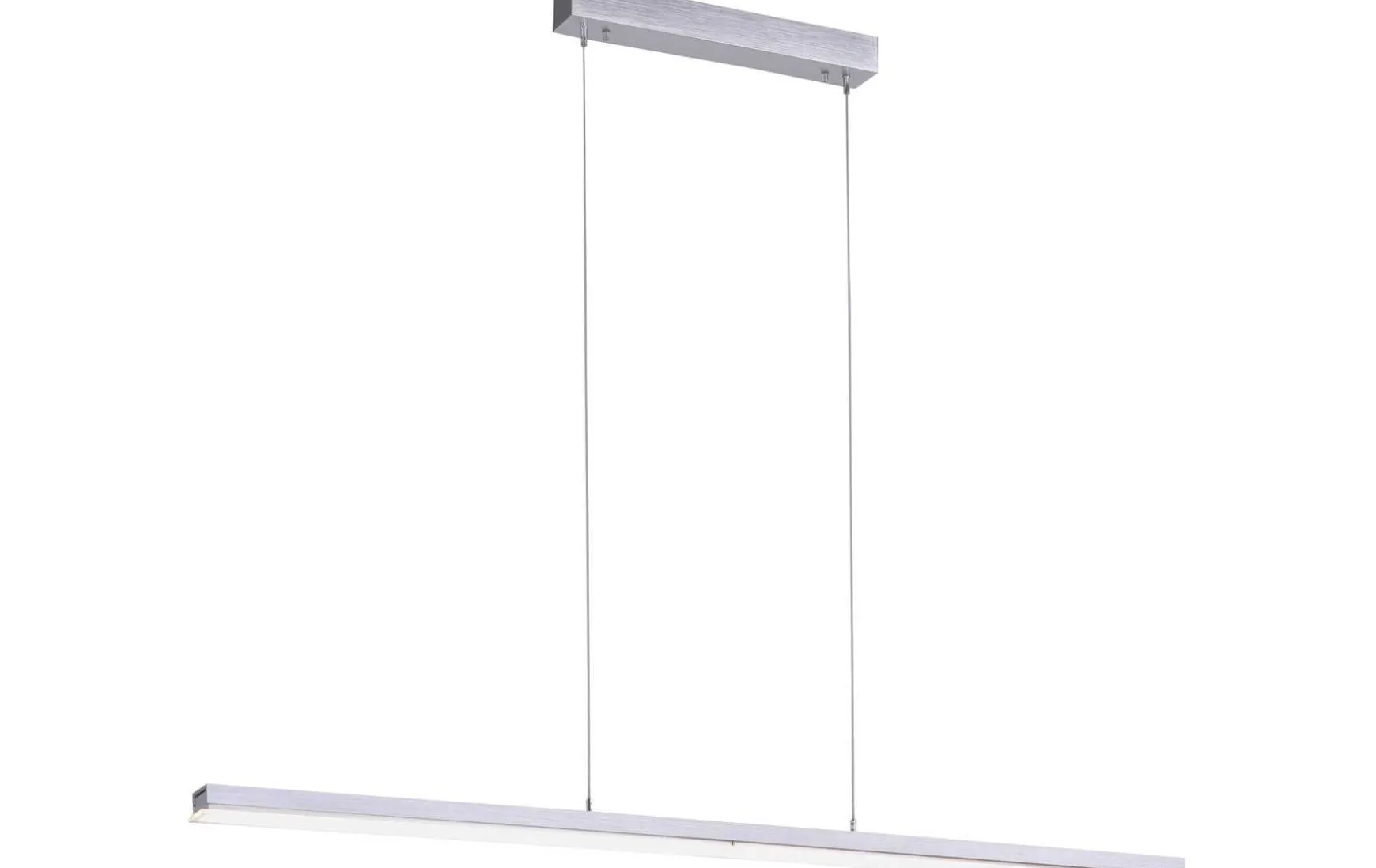 Die Leuchte hat eine Länge von 180,4 cm, eine Breite von 5,5 cm und eine maximale Abhängung von 120 cm.