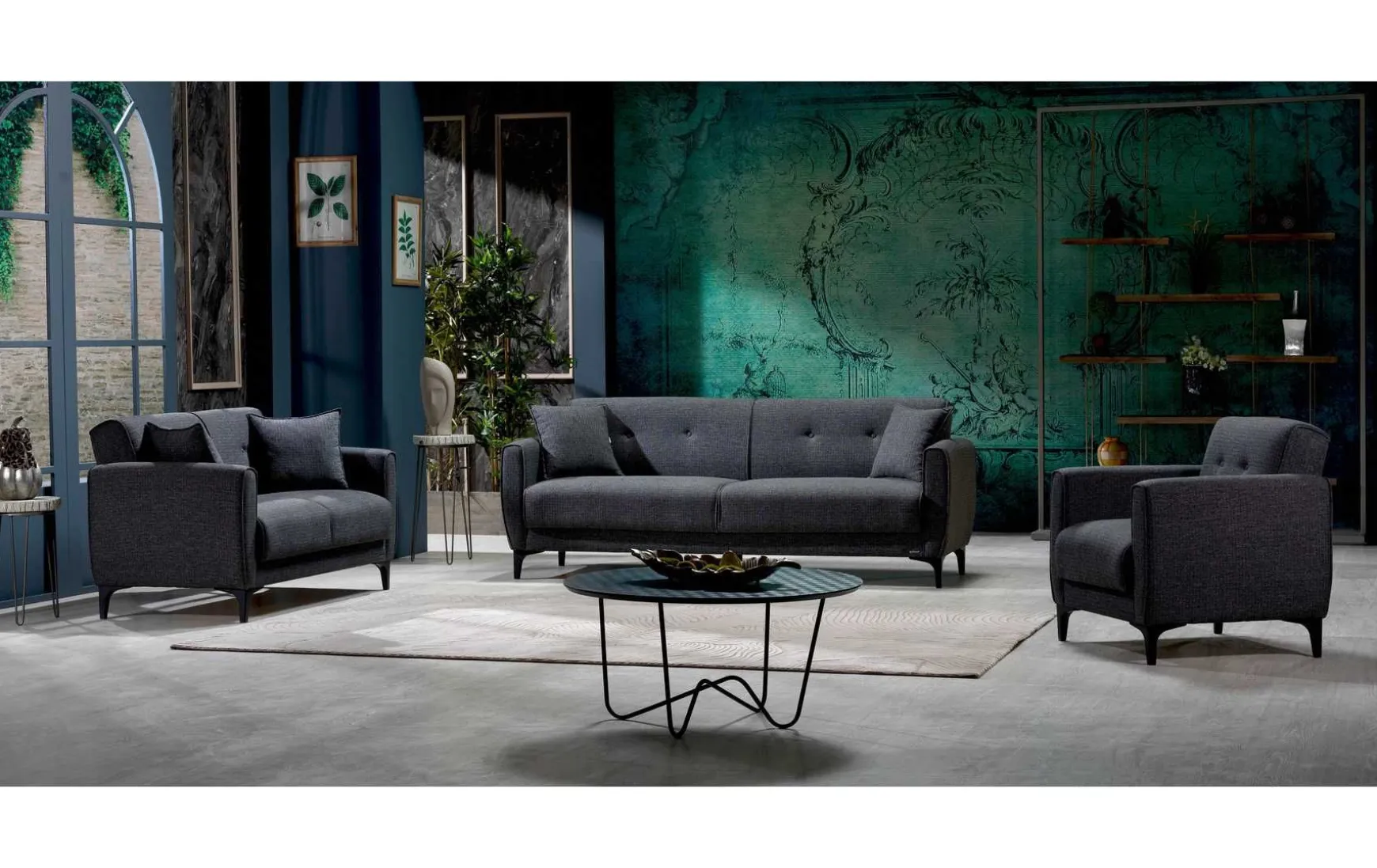 Holen Sie sich mit dieser Garnitur eine Wohlfühloase mitten in Ihre vier Wände. Die hohen, schwarzen Kunststofffüße geben dem 3-Sitzer Bodenfreiheit und verleihen zusätzlich einen Hauch von Leichtigkeit.