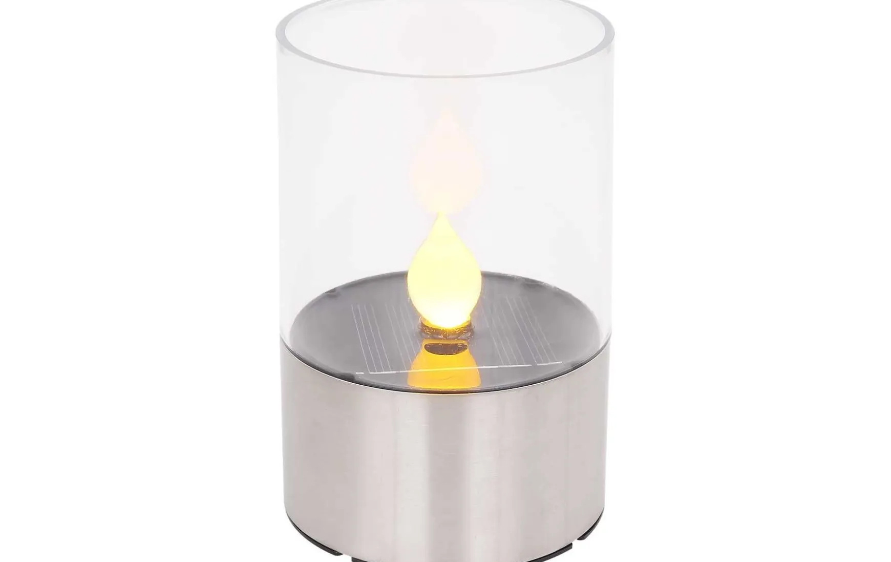 Solarleuchte Edelstahl, Kunststoff klar, Schiebeschalter, Fire Effect, Akku inkludiert AAA 100mAh 1.2V, IP44, ø: 75mm, H: 110mm, inkl. LED 0.06W 3.2V, 1800K