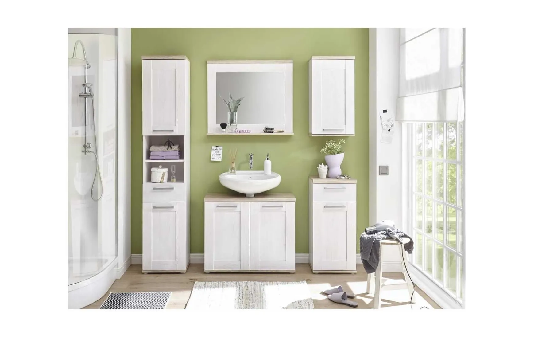 Dieser Badezimmerspiegel mit integrierter Holzablage vereint Funktionalität und modernes Design. Der weiße Rahmen sorgt für eine klare, freundliche Optik und passt ideal in verschiedene Badstile. Die praktische Ablage aus Holz bietet Platz für Kosmetikartikel, Pflegeprodukte oder Dekoration und hält alles griffbereit. Mit seinen kompakten Maßen von ca. 80 x 70 x 12 cm ist der Spiegel ideal für Badezimmer, Gäste-WCs oder kleine Räume geeignet. Eine stilvolle und praktische Ergänzung für Ihr Bad.