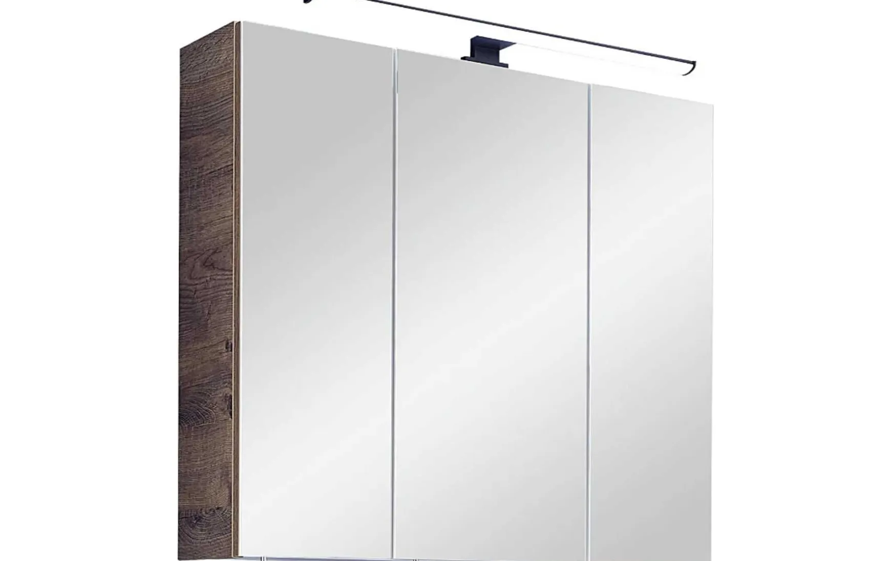 Mit drei Spiegeltüren bietet der Schrank nicht nur eine großzügige Spiegelfläche, sondern auch verdeckten Stauraum für Kosmetik- und Badaccessoires. Die warme braune Holzoptik verleiht dem Bad eine natürliche, moderne Note. Gefertigt aus hochwertigem Holzwerkstoff und Spiegelglas, überzeugt der Spiegelschrank durch Stabilität und Pflegeleichtigkeit. Dank der vormontierten Lieferung ist er schnell und unkompliziert einsatzbereit.
