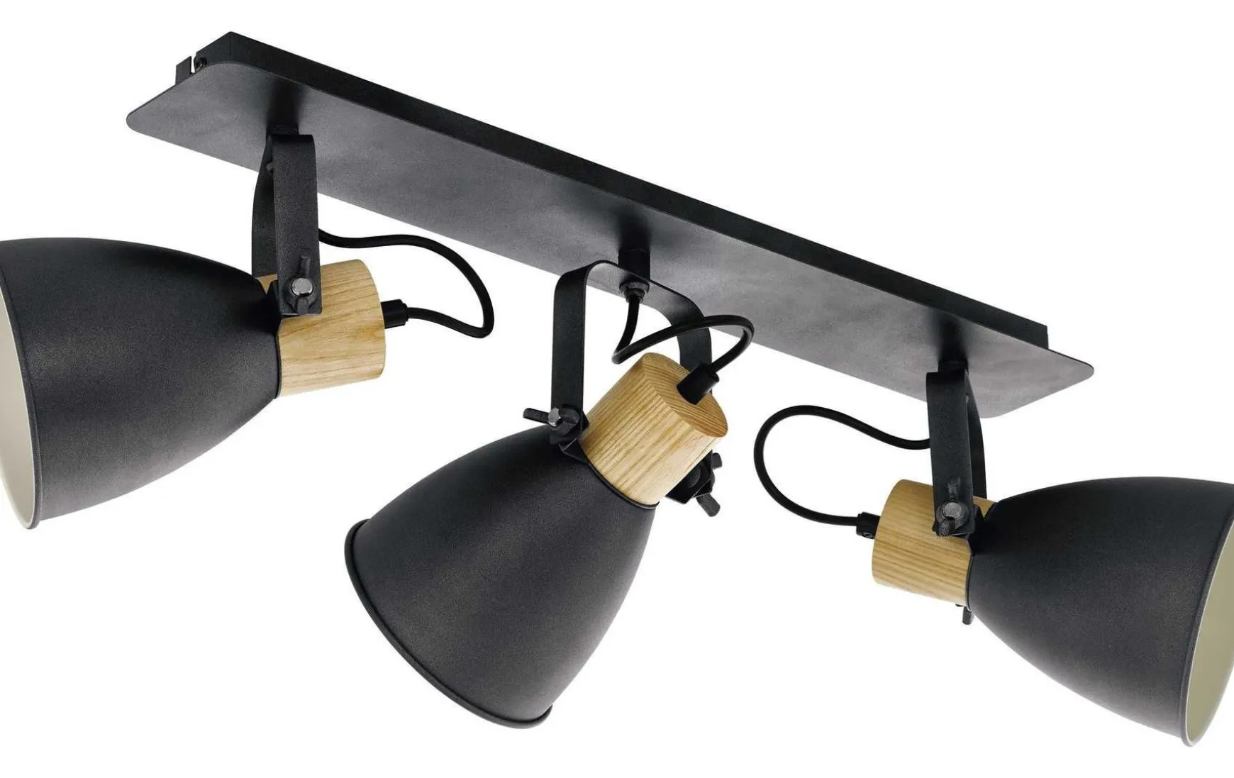 Diese Deckenleuchte ist aus anthrazitfarbenem Metall mit drei beweglichen Spots mit cremefarbenen Innenseiten gefertigt und mit naturfabenen Holz-Elementen kombiniert. Der Deckenspot rundet Einrichtungstrends im Vintage- oder Industrial-Stil ab. Die Leuchte ist eine moderne Deckenlampe und ist dank ihrer schwenkbaren Leuchtenköpfe für jeden Raum geeignet – egal ob in der Küche, im Wohnzimmer, Schlafzimmer, Flur oder Esszimmer Die abgebildeten Filament-Leuchtmittel sind nicht im Lieferumfang enthalten. Geeignet ist die Leuchte für jedes Leuchtmittel mit E27-Sockel.