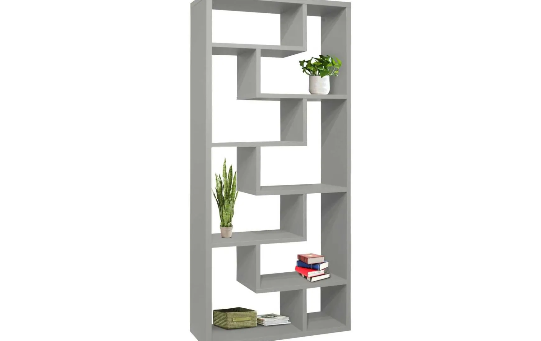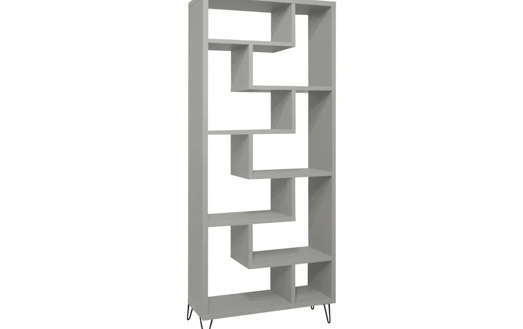 Dieses moderne Standregal überzeugt durch sein markantes Design mit schräggestellten Drahtfüßen und bietet zugleich viel praktischen Stauraum. Mit insgesamt acht offenen Fächern eignet es sich ideal zur Aufbewahrung von Büchern, Deko, Ordnern oder Wohnaccessoires und ist vielseitig in Wohn-, Arbeits- oder Essbereichen einsetzbar. Die matte Oberfläche in Kreidegrau verleiht dem Regal eine ruhige, moderne Optik, während die schwarzen Metallfüße im V-Fuß-Design für Stabilität und einen industriellen Akzent sorgen. Gefertigt aus robustem Holzwerkstoff und mit einer maximalen Belastbarkeit von ca. 52 kg ist das Regal langlebig und alltagstauglich. Pflegeleicht und funktional – ein stilvolles Möbelstück für moderne Wohnkonzepte.