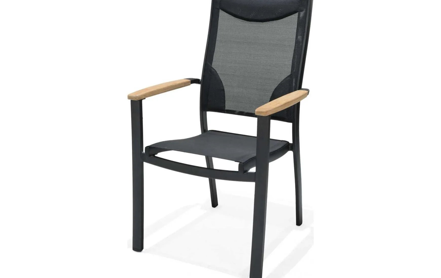 Der Stapelsessel verspricht genau so viel, wie der bekannte Positionsstuhl. In wenigen Sekunden lassen sich mehrere Sessel problemlos in einander stapeln. Robustes Aluminium in Batman Black und Teakholz Armlehnen geben dem Sessel einen besonderen reiz.