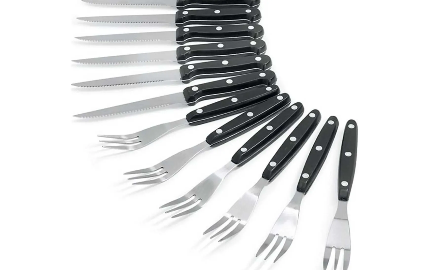 Suchen Sie ein Grill/Steakbesteck? Das 12-tlg. Steakbesteck aus rostfreiem Edelstahl liegt gut in der Hand.