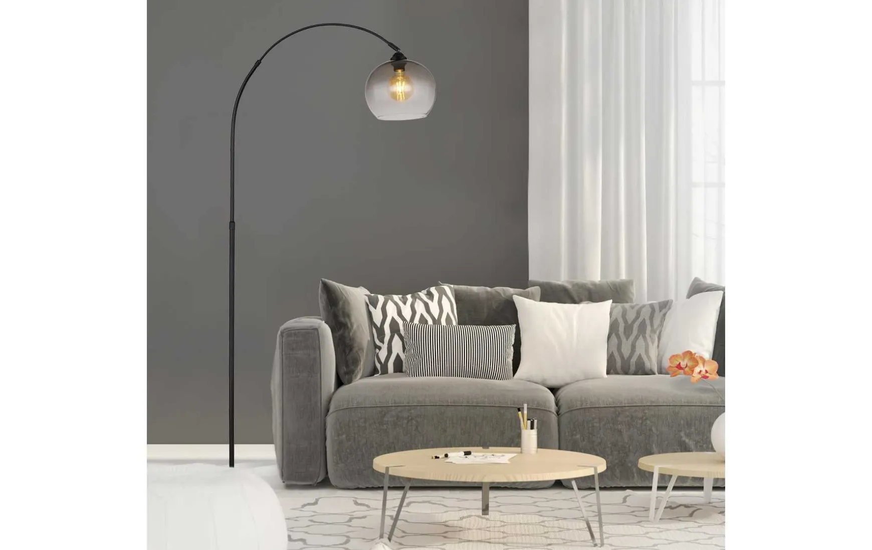 Stehleuchte Metall schwarz matt, Marmor schwarz, Glas rauchfarben, Kabel PVC Schwarz, Fußtrittschalter im Kabel, Höhenverstellbar, LxBxH: 960x300x1960mm, Kabellänge 1800mm, Höhe einstellbar, von 141 bis 196 cm, exkl. 1x E27 60W 230V