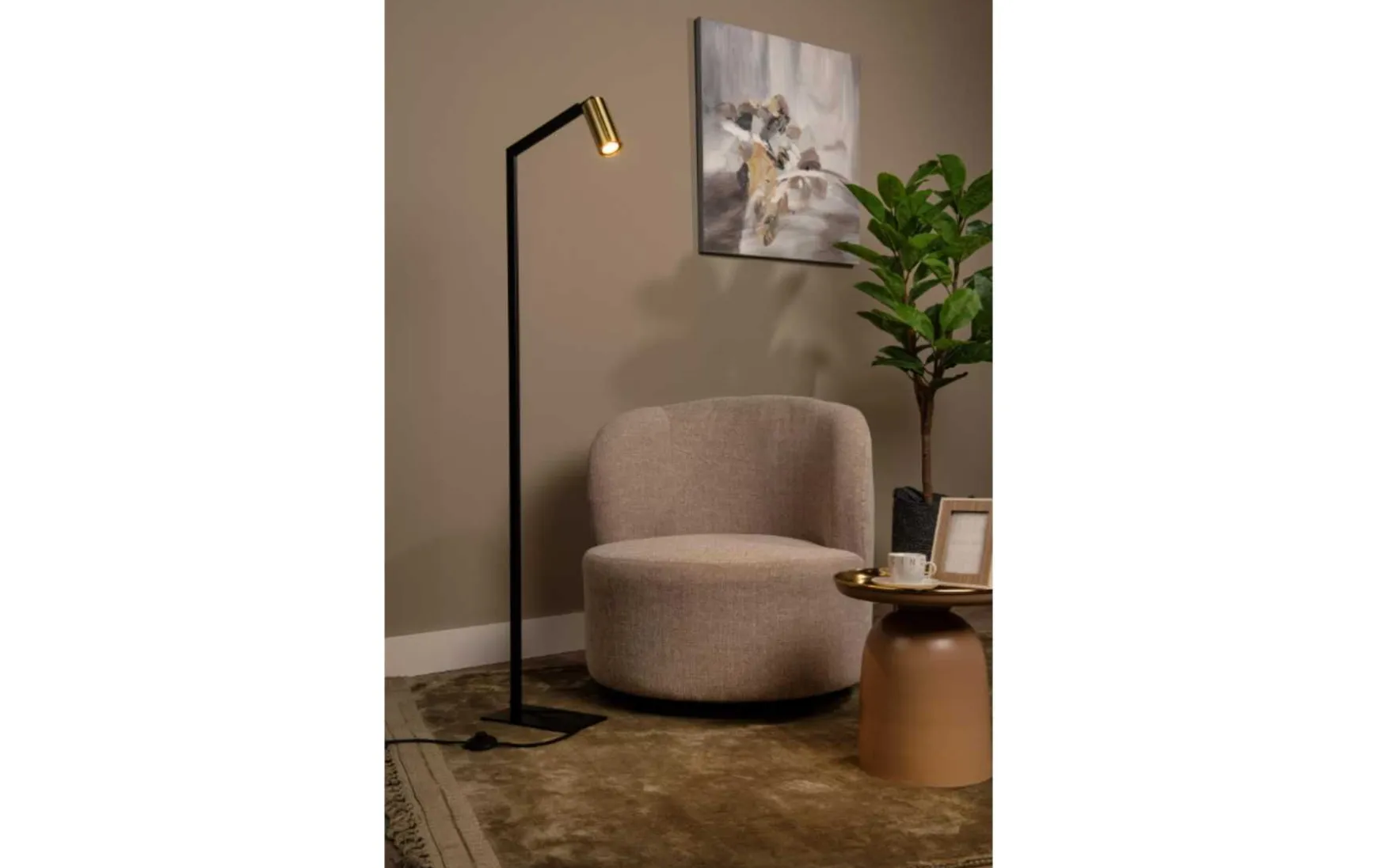 Eine nüchterne Erscheinung, die Ihnen bis spät in die Nacht Gesellschaft leistet. Diese raffinierte Stehlampe passt in ein modernes oder klassisches Interieur, neben ein Sofa aus Stoff, Leder oder Velours. Die Lampe selbst ist in einen Messingzylinder eingebaut und zieht so die Aufmerksamkeit auf sich. Sybil ist ein länglicher Würfel mit einer Höhe von 145 Zentimetern und einer Basis von 40 Zentimetern. Neigen Sie den Lichtstrahl nach oben oder unten, um die gewünschte Helligkeit einzustellen. Mit der Lektüre fertig? Sie schalten Sybil einfach mit dem Schalter aus.