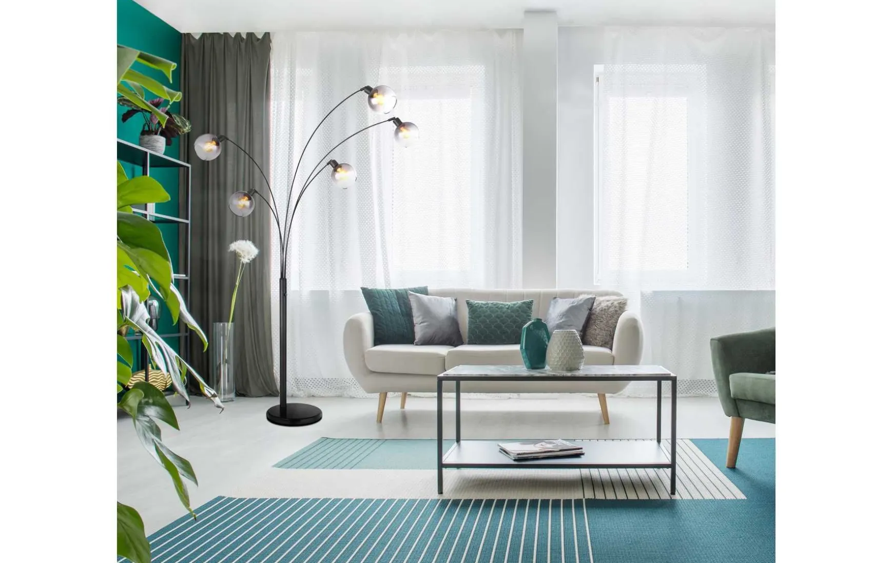 Elegant und modern, das verbindet diese wundervolle schwarz matte Stehlampe mit einem Marmorsockel und einer Höhe von 208 cm. Die fünf angebrachten E27 Fassungen werden von rauchfarbenen Glasschirmen umhüllt und durch die E27 Fassungen steht es Ihnen frei, selbst zu entscheiden, welches Leuchtmittel (max. 40W) Sie verwenden wollen und somit auch die Lichtstärke und Lichtfarbe.