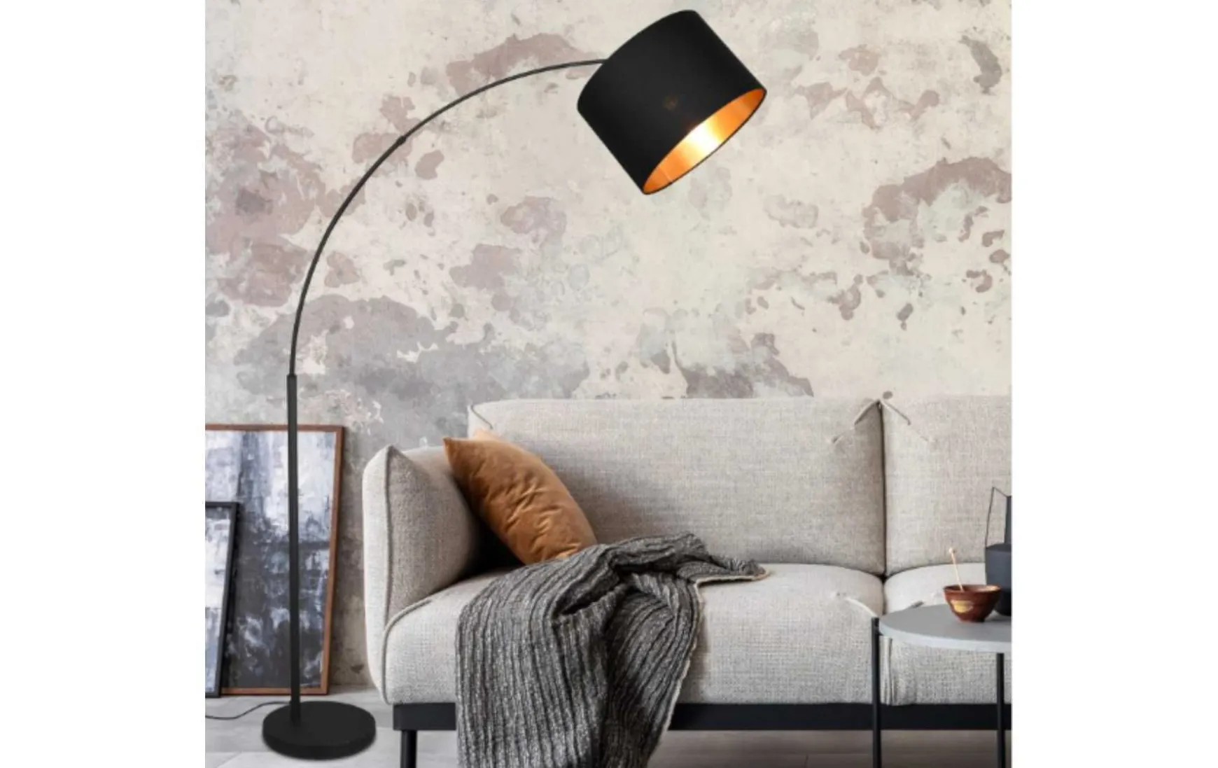 Die Bogenleuchte schafft durch die Kombination von Form und Material eine Atmosphäre von Gemütlichkeit und Wohlbefinden in Ihrem Wohnbereich. Die moderne und elegante Leuchte wird mit ihrem Textilschirm zum Highlight neben Ihrem Sofa und sorgt zeitgleich für eine perfekte und stimmungsvolle Beleuchtung. Über einen Fußschalter lässt sich die Stehleuchte bequem ein- und ausschalten. ‚Die Farbkombination nach dem Motto “Black meets Gold“ wirkt elegant und edel und wird zu einem besonderen Blickfang mit toller Lichtwirkung.‘ Für eine energiesparende Beleuchtung empfiehlt sich die Verwendung eines LED Leuchtmittels. Diese sind eine optimale Alternative zu herkömmlichen Halogen Leuchtmitteln und stehen für eine hohe Lichtqualität und eine Energieeinsparung von bis zu 80%. Zusätzlich profitieren Sie bei LED Leuchtmitteln von einer langen Lebensdauer, einer geringen Wärmeentwicklung und schonen gleichzeitig die Umwelt.