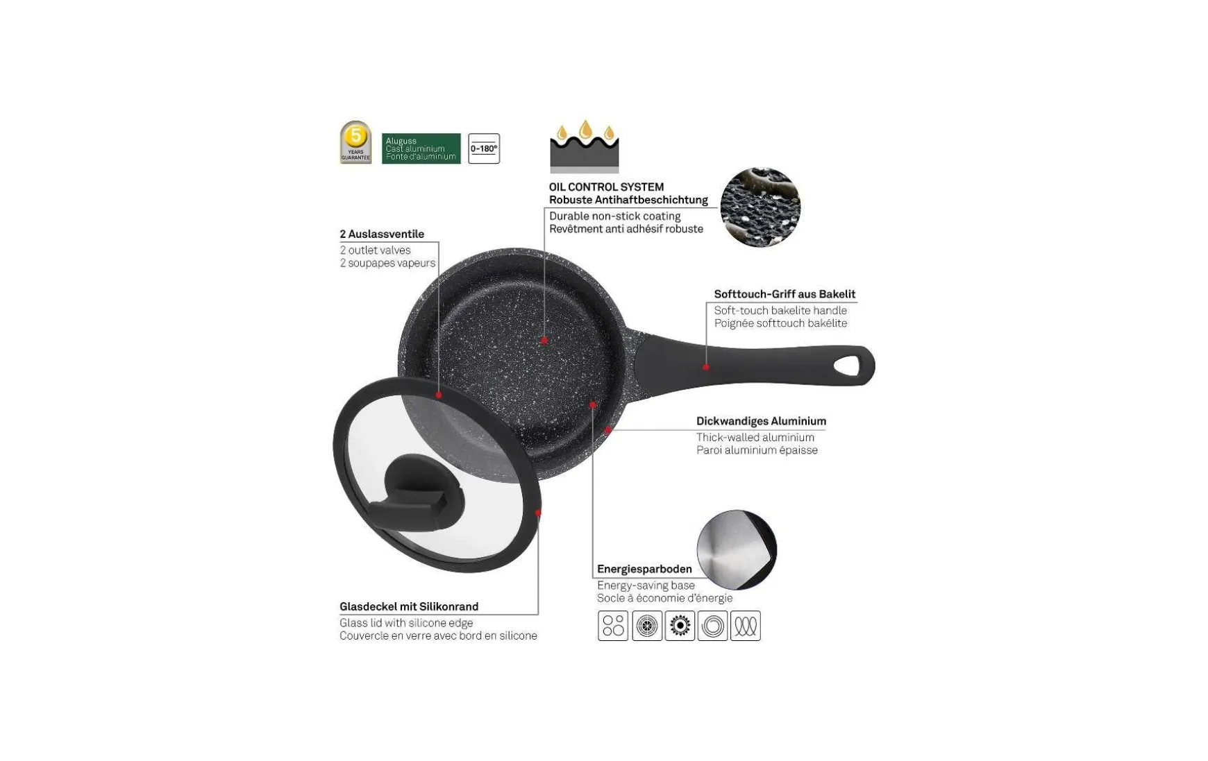 - Für alle Herdarten geeignet, auch Induktion