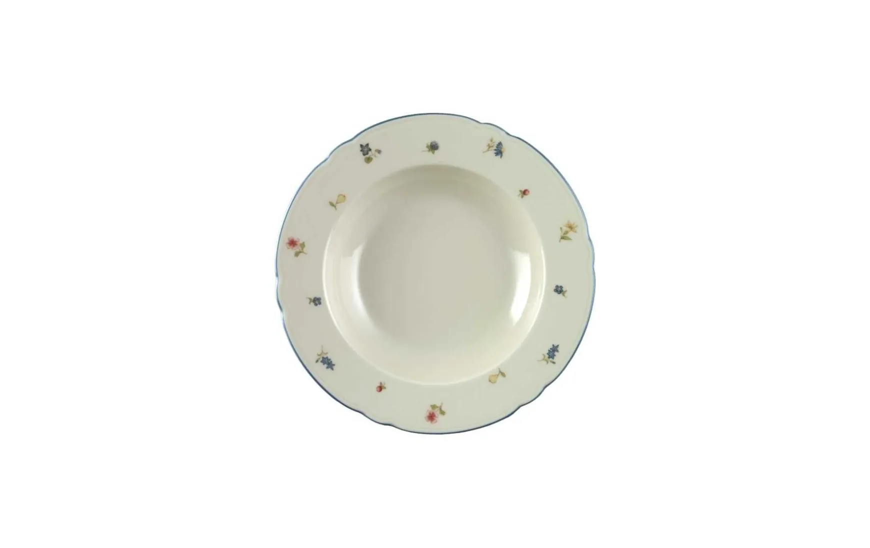 Dieser Artikel aus der Seltmann & Weiden Kollektion bringt klassische Porzellanformen mit geschwungenen Linien auf Ihre Tafel und zeichnet sich durch einen angenehm warmen Elfenbeinfarbton mit Streublumenmuster und blauem Rand aus.