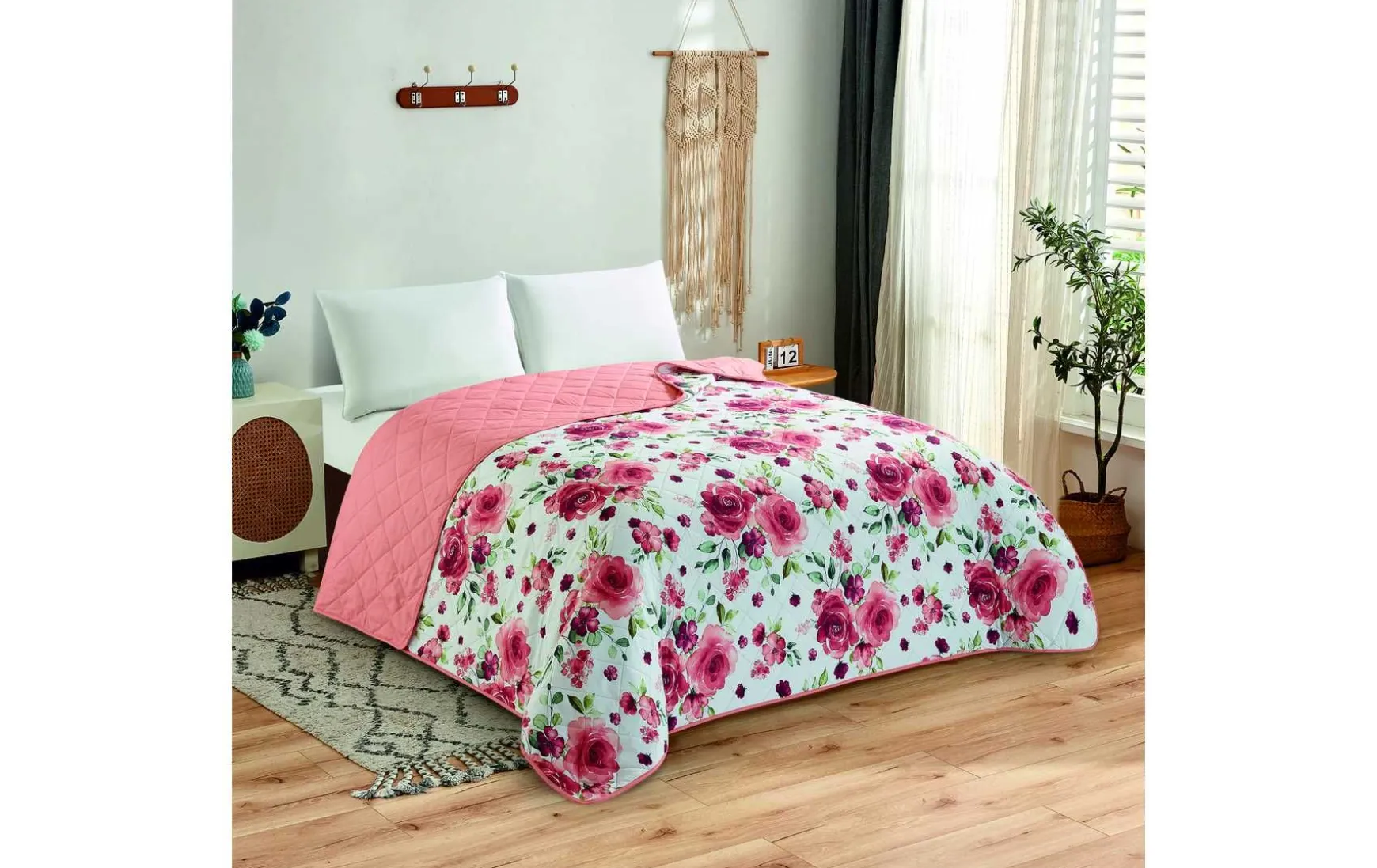 Die Tagesdecke im Rosendessin bringt romantisches Flair in Ihr Schlafzimmer.