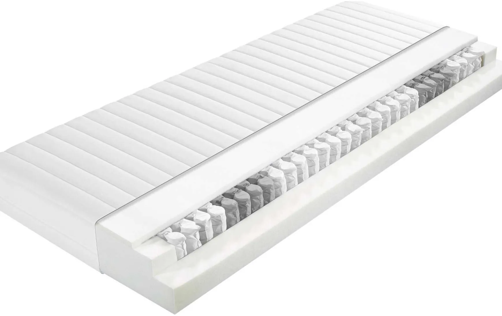 Hochelastische 5-Zonen Taschenfederkern-Matratze: Diese traumhaft bequeme Taschenfederkernmatratze verfügt über eine Liegefläche von 90 x 200 cm. Dazu hat diese Matratze einen abnehmbaren Bezug, der bis 60 Grad waschbar ist. Der Härtegrad der Federkernmatratze beträgt H2.