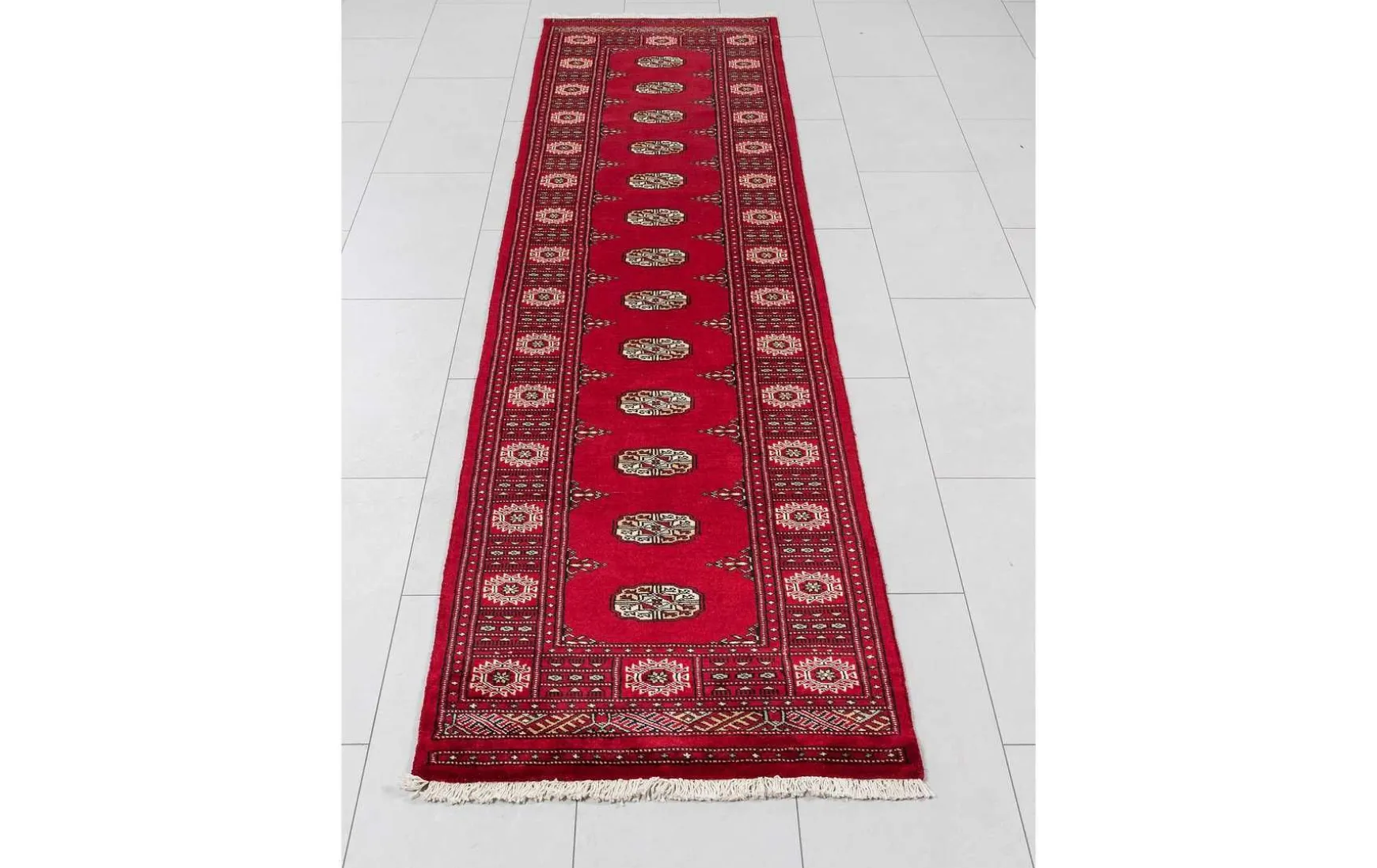 Entdecken Sie die zeitlose Schönheit eines handgefertigten Bokhara Teppich Läufers aus 100% Schurwolle aus Pakistan. Jeder Schritt auf diesem Meisterwerk ist ein Genuss. Platzieren Sie ihn im Eingangsbereich oder Flur, um Ihrem Zuhause einen Hauch von Luxus zu verleihen. Erleben Sie die unvergleichiche Qualität und zeitlose Schönheit, die nur ein handgefertigter Teppich bieten kann.