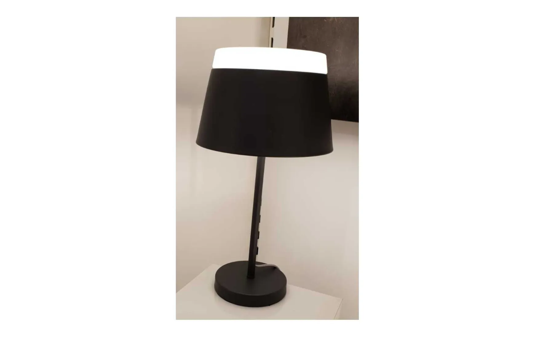 Diese Tischleuchte überzeugt durch ihr modernes und auch minimalistisches Design. Der Schirm besteht aus Metall, wobei die Ober- und Unterseite jeweils durch eine weiße Acrylscheibe abgeschlossen ist, sodass Licht sowohl nach oben als auch nach unten abgegeben wird.