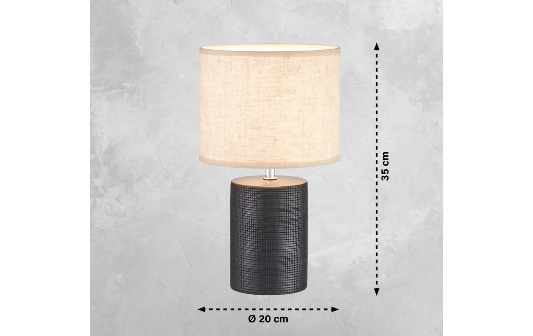 Abenteuer für die Sinne und mit Licht einen neuen Look kreieren. Der matt schwarze Keramikfuß mit leichter Struktur und der Stoffschirm in sandfarbenem Leinen, innen weiß, erfüllen ihre Räume mit einer wohligen und natürlichen Atmosphäre. Vergeben sie doch mal die Hauptrolle an neue Tischleuchten. Im gesamten Wohnbereich, Flur und Schlafbereich haben diese dekorativen Leuchten den nettesten Job. Sie sind ein hübscher Blickfang und erschaffen gemütliche Lichtinseln. Die beste Art, Ihr Zuhause neu zu gestalten. Durch den integrierten Schnurschalter ist einfaches Ein- und Ausschalten gewährleistet.
