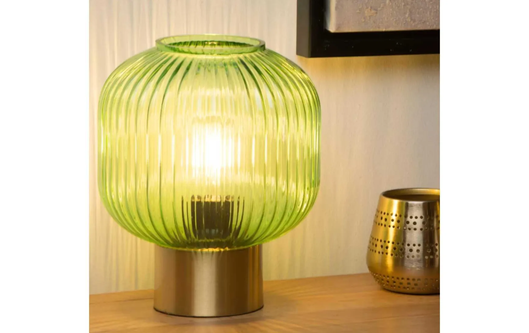 Bevorzugen Sie einen kleinen und feinen Retro-Touch in Ihrem Interieur? Die grüne Kugel aus hochwertigem Glas steht auf einem eleganten goldenen Metallfuß. Maloto passt in jeden Schrank – vom Wohnzimmer bis zum Esszimmer. Oder warum nicht als Nachtlicht? Die Stoffschnur ist mit einem Schalter ausgestattet, der das Ein- und Ausschalten der Tischlampe erleichtert.