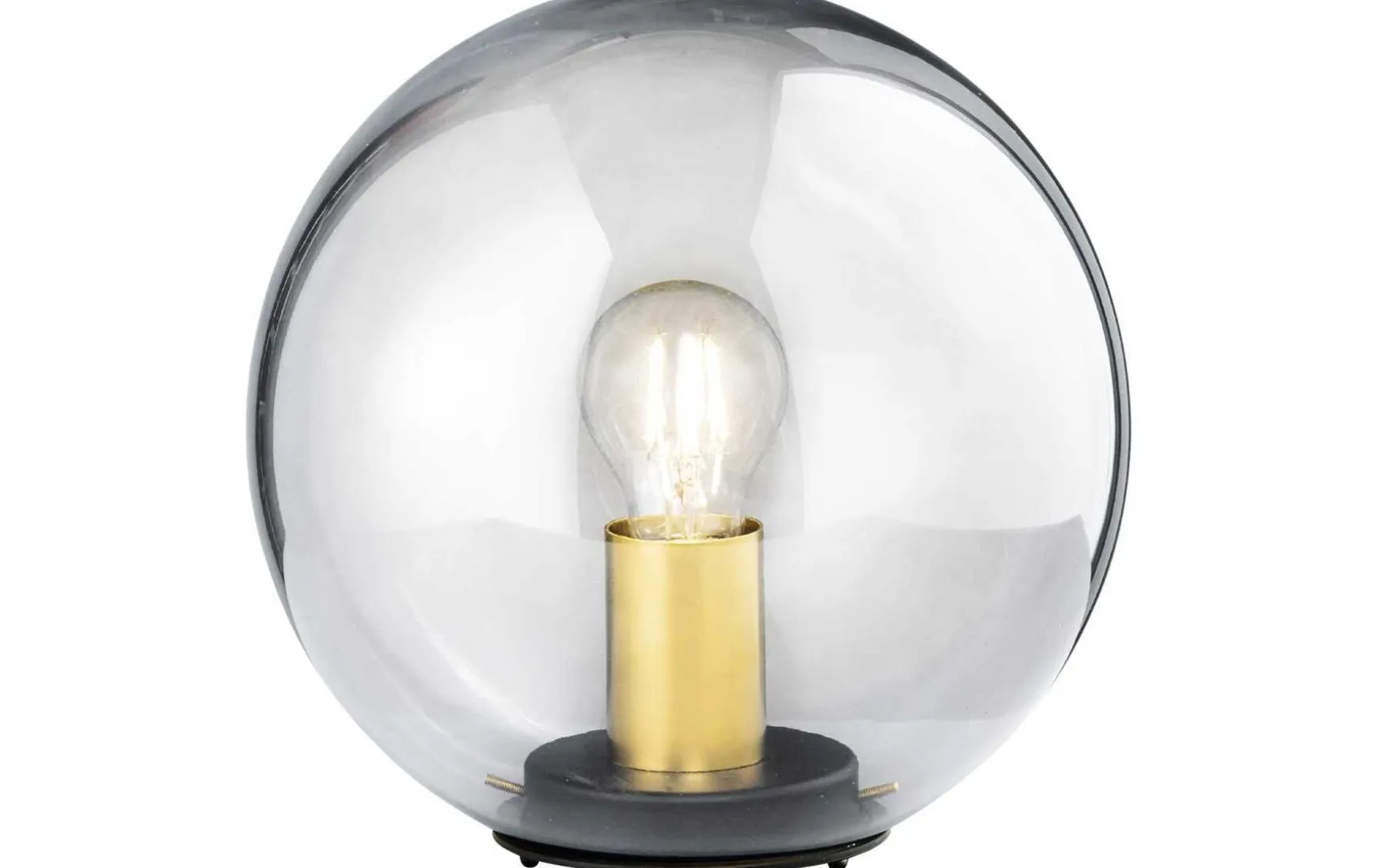 Tischleuchte Dini | | rauchfarben transparent schwarz matt | altmessingfarben matt Glas – rauchfarben – transparent – L: 30,00 cm | B: 30,00 cm | H: 30,00 cm D: 30,00 cm 1x E27 max. 40,0 W, exkl.Leuchtmittel mit Schnurschalter,