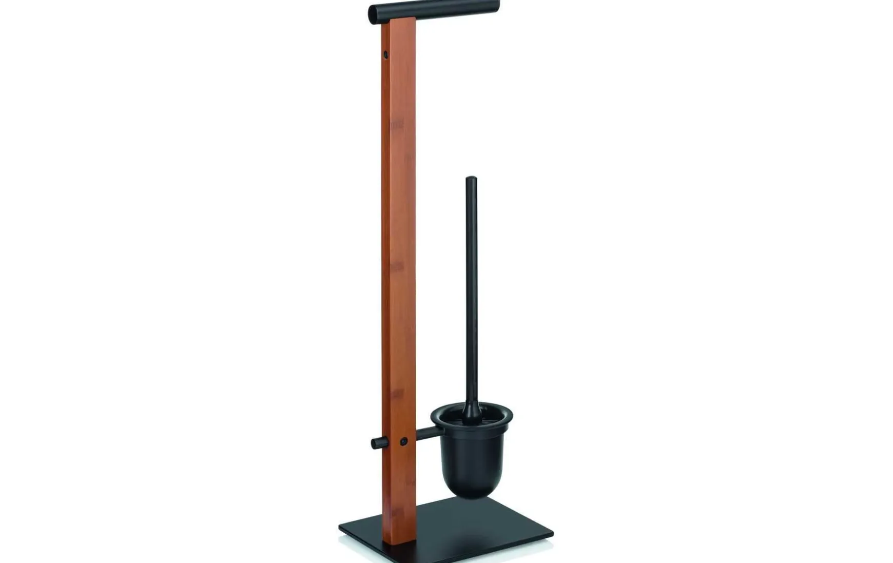 Die Bürste mit Griff und der Becher sind in matt-schwarzer Optik, genau wie der Standfuß, und harmonieren perfekt mit dem Bambus-Element.