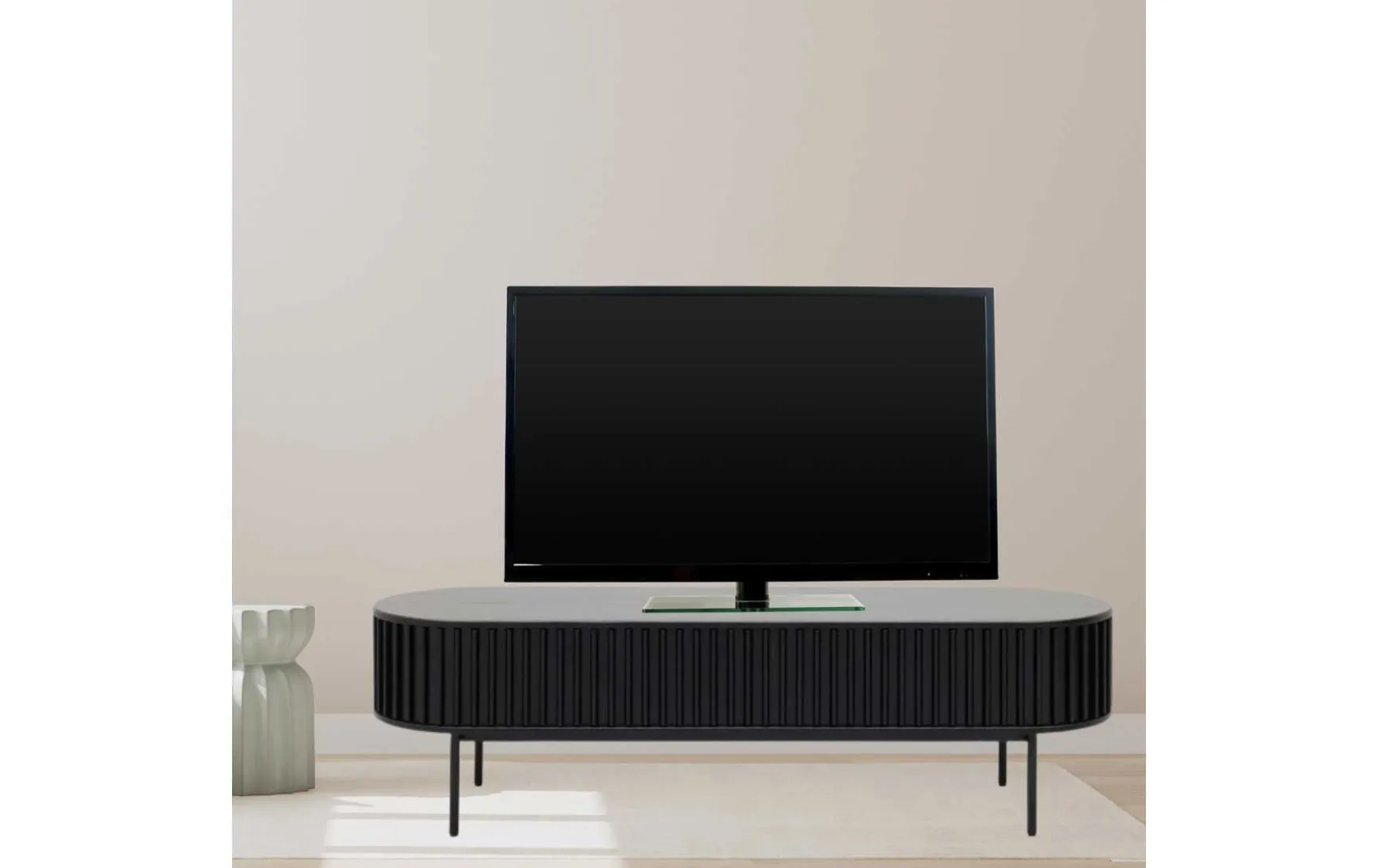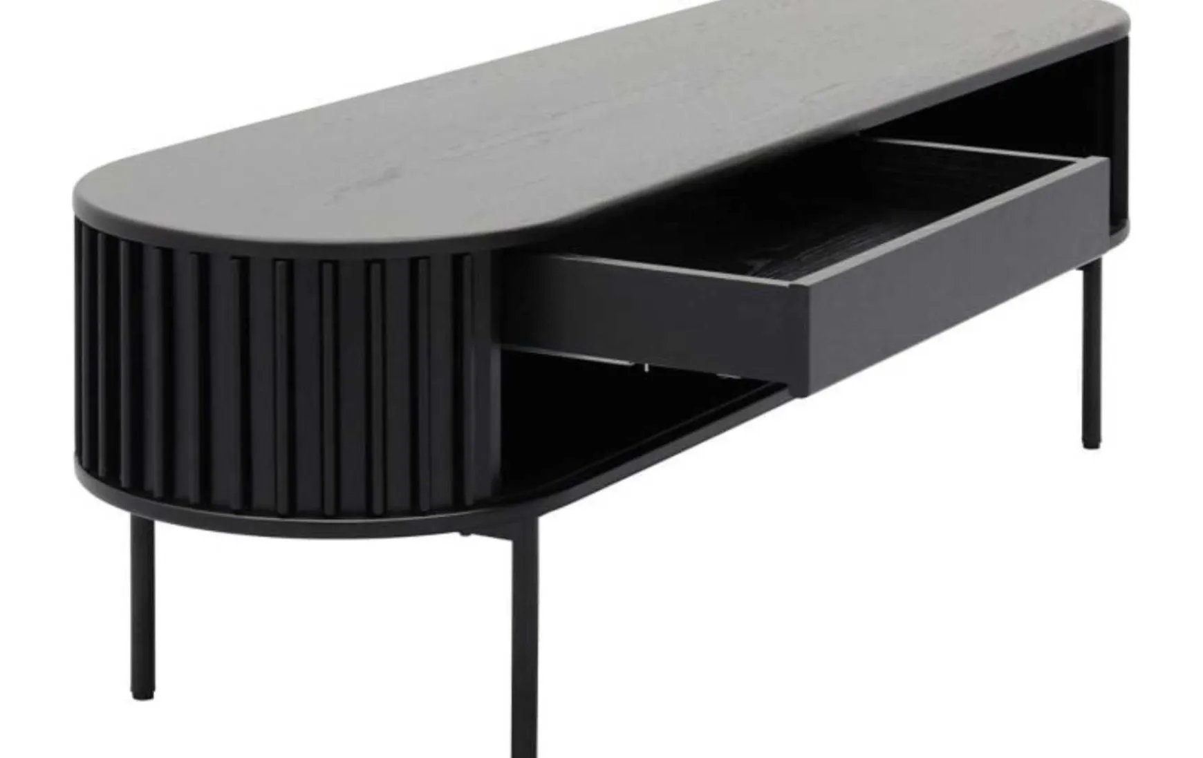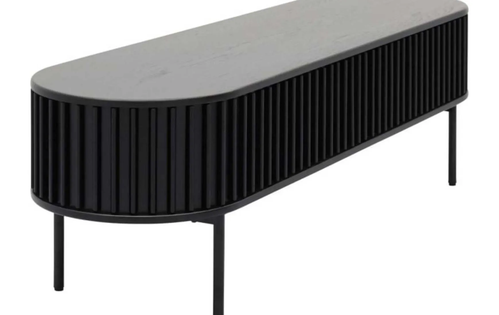 Ihr neuer TV-Schrank, wenn Sie modernes Design mögen. Mit einer Größe von 160x48x45 cm bietet diese Schönheit ausreichend Platz für Ihren Fernseher, Ihre Lieblings-Gadgets und attraktive Deko. Das lackierte Eichenfurnier strahlt pure Eleganz aus, während die schwarzen Metallbeine für eine stabile Basis sorgen. Und diese schwarze Farbe? Schön und zeitlos! Die Rippen verleihen Susa zudem einen verspielten Look.