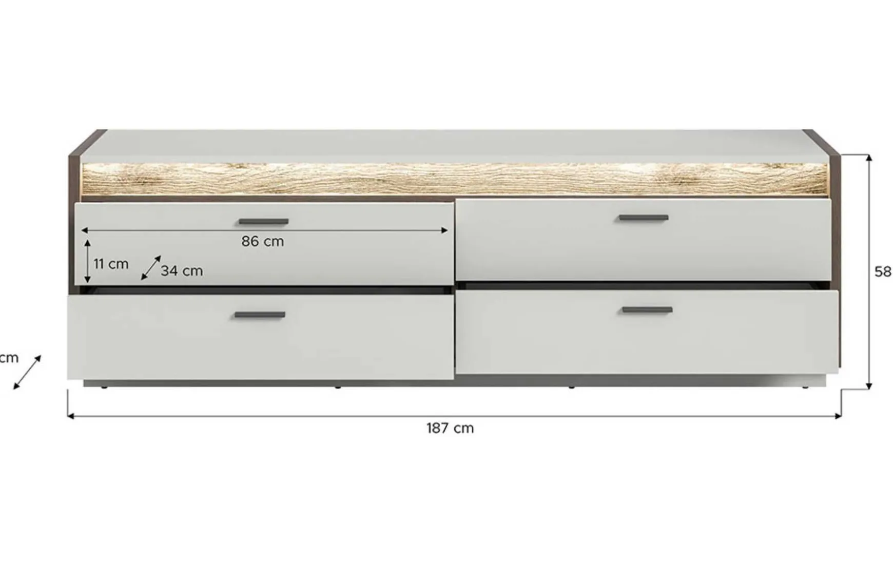 Der TV-Tisch mit 4 Schubladen, LED-Beleuchtung und Softclose-Funktion in Hellgrau ist die perfekte Lösung für Ihr Wohnzimmer. Mit seinem eleganten Design, praktischen Stauraum und den komfortablen Softclose-Funktionen bietet er sowohl Stil als auch Funktionalität.