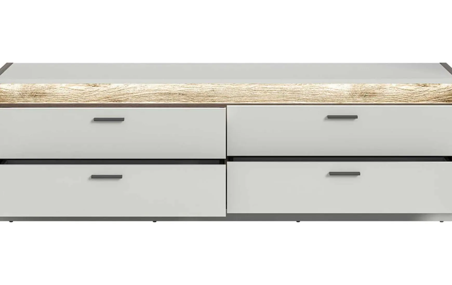 Mit 4 Softclose-Schubladen und einer hochwertigen Verarbeitung ist der TV-Tisch ideal für die Aufbewahrung von Zubehör und Kleinteilen. Das Softclose-System sorgt für ein leises und sanftes Schließen der Schubladen und schont das Material. Außerdem bietet der Tisch ausreichend Platz für Geräte, Kabel oder Dekoration.