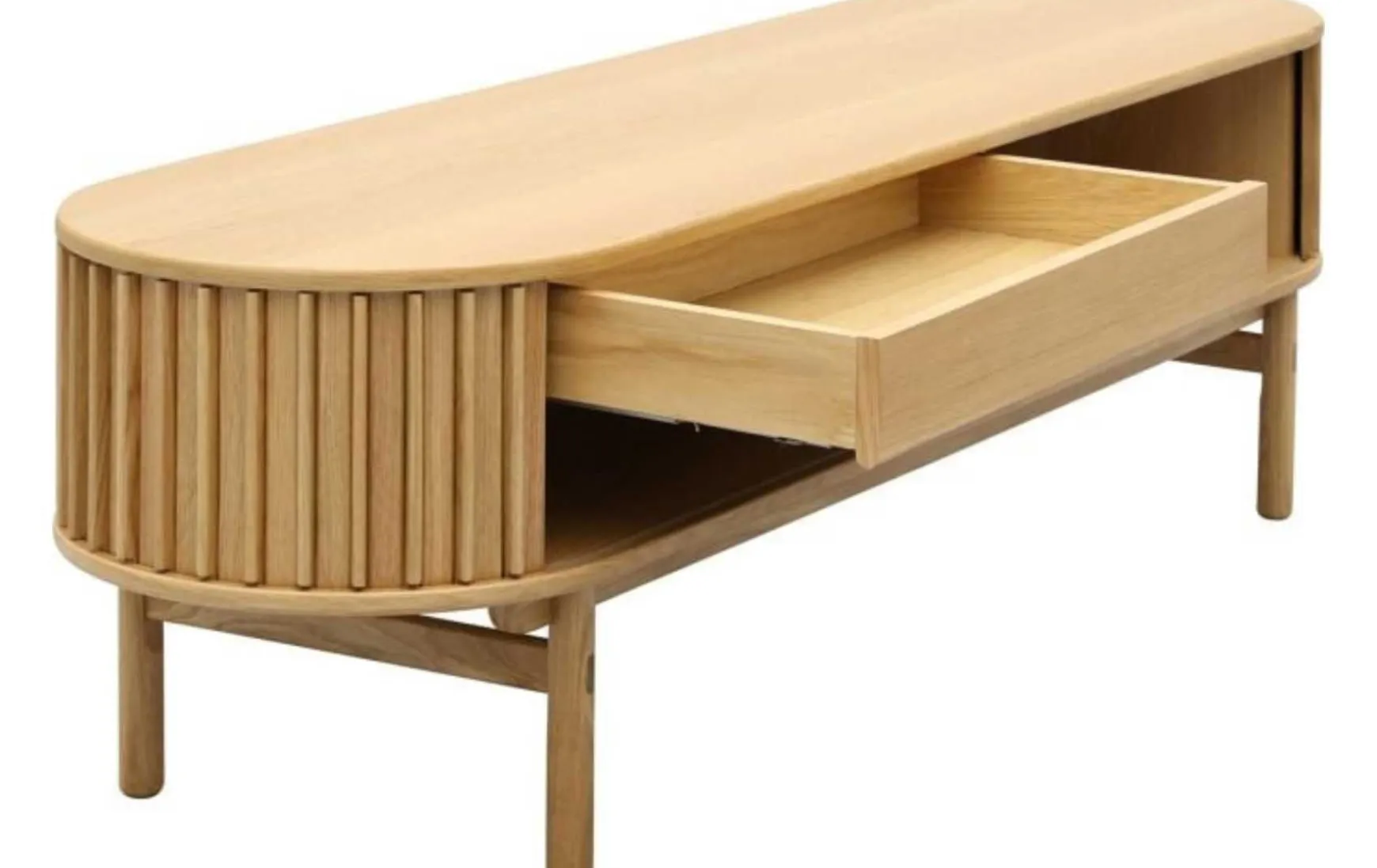Das ist Ihr neuer TV-Schrank und der ultimative Hingucker in Ihrem Zuhause! Mit einer Größe von 160x48x45 cm bietet diese Schönheit ausreichend Platz für Ihren Fernseher, Ihre Lieblings-Gadgets und attraktive Deko. Das lackierte Eichenfurnier strahlt pure Eleganz aus, während die Beine aus massiver Eiche für eine stabile Basis sorgen. Und diese natürliche Eichenfarbe? Schön und zeitlos!