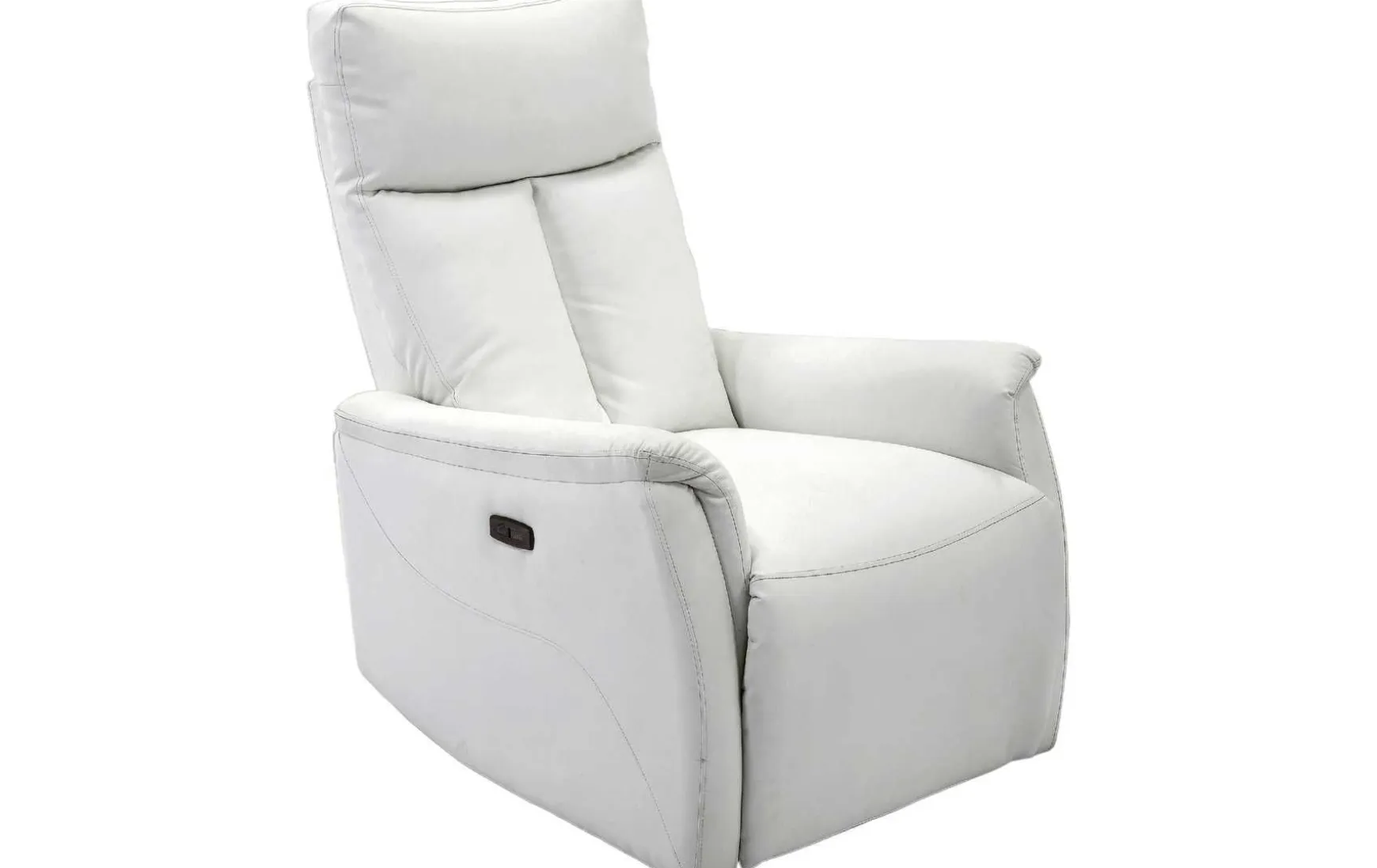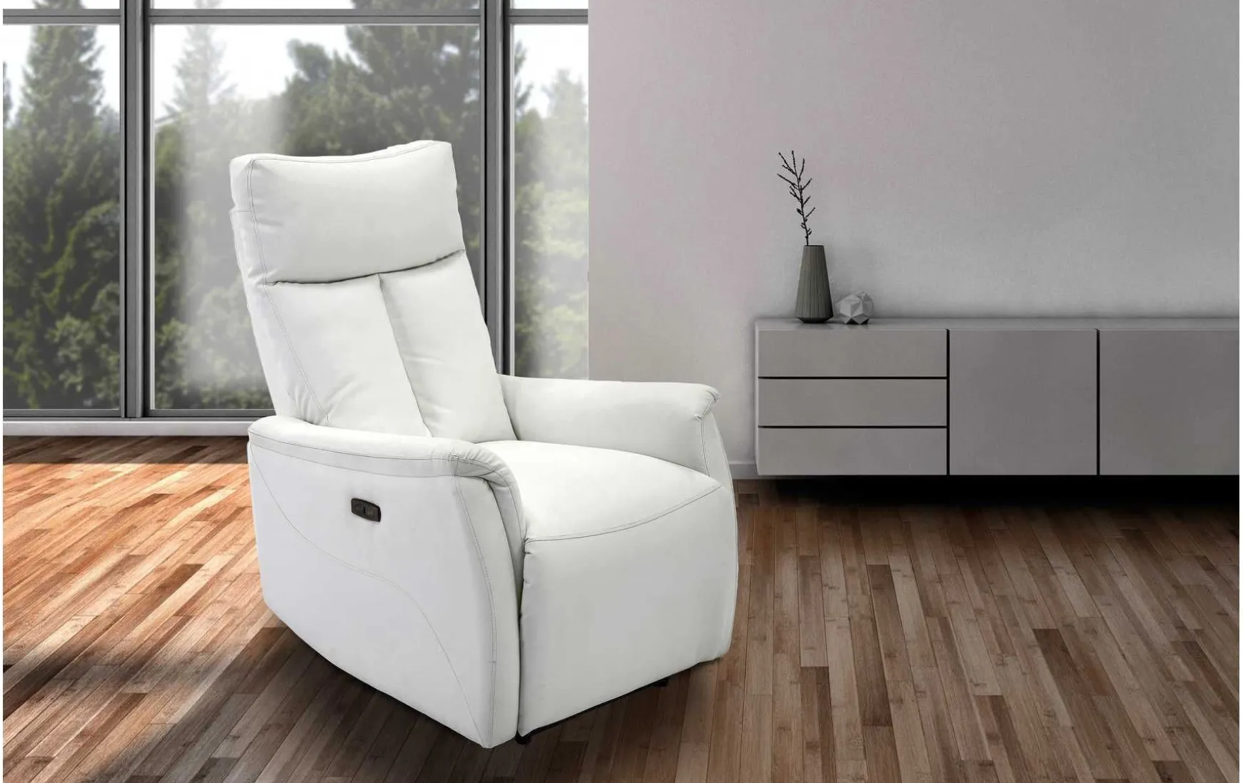 Moderner TV Sessel in Stoffbezug / Lederoptik, Farbe weiss, 1-motorisch mit Relaxfunktion per einfachem Knopfdruck.