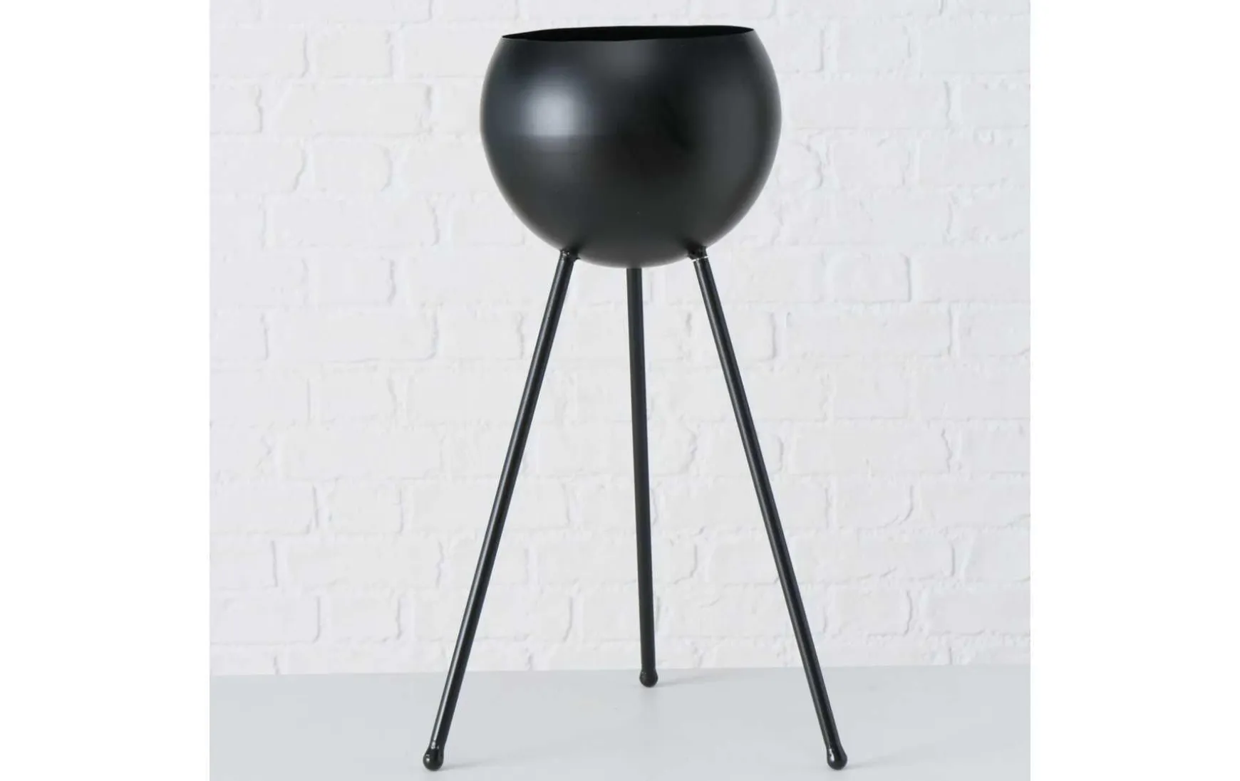 Dieser Pflanztopf in matt schwarz lackiertem Metall ist an das Design der 70er angelehnt. Die 3 ausgestellten Beine halten eine runde Pflanzschale – simpel und schön!
