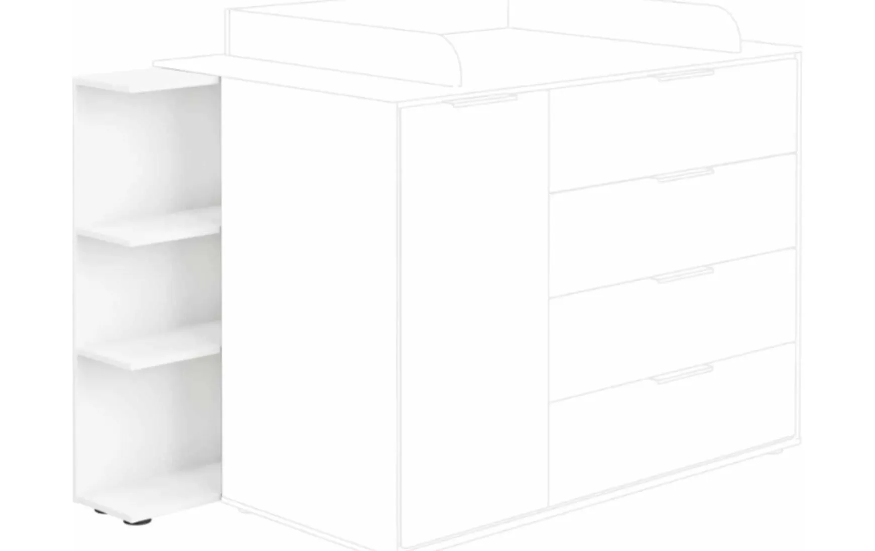 - Gegen Mehrpreis erhältlich: Kommode, Kleiderschrank, Wandregal, Kinderbett, Standregal, Wickelaufsatz