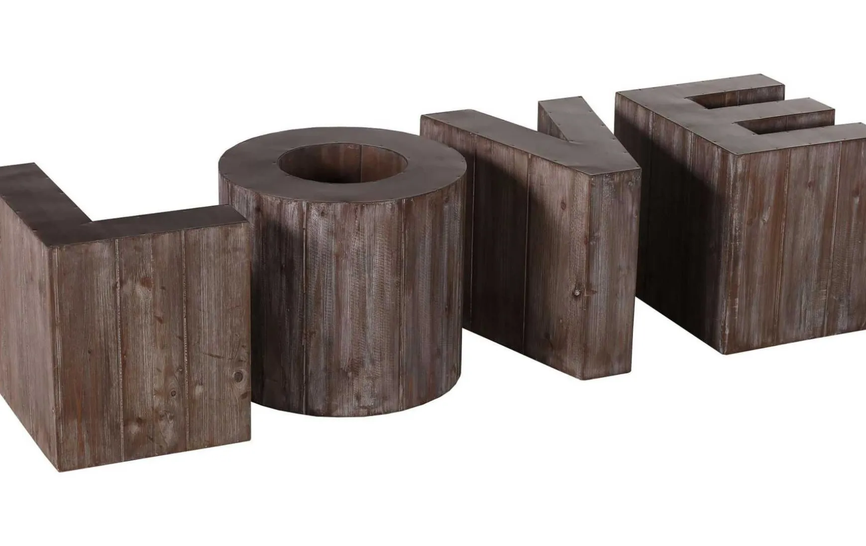 Dieser außergewöhnliche Vintage-Couchtisch ist ein echtes Design-Statement. Bestehend aus den vier Buchstaben L O V E, verbindet er kreative Formgebung mit einem spannenden Materialmix aus teilmassiver Tanne und kupferfarben lackiertem Metall. Der moderne Look mit Vintage-Charakter macht den Tisch zum Blickfang in jedem Wohnraum und bietet zugleich vielseitige Stell- und Kombinationsmöglichkeiten.