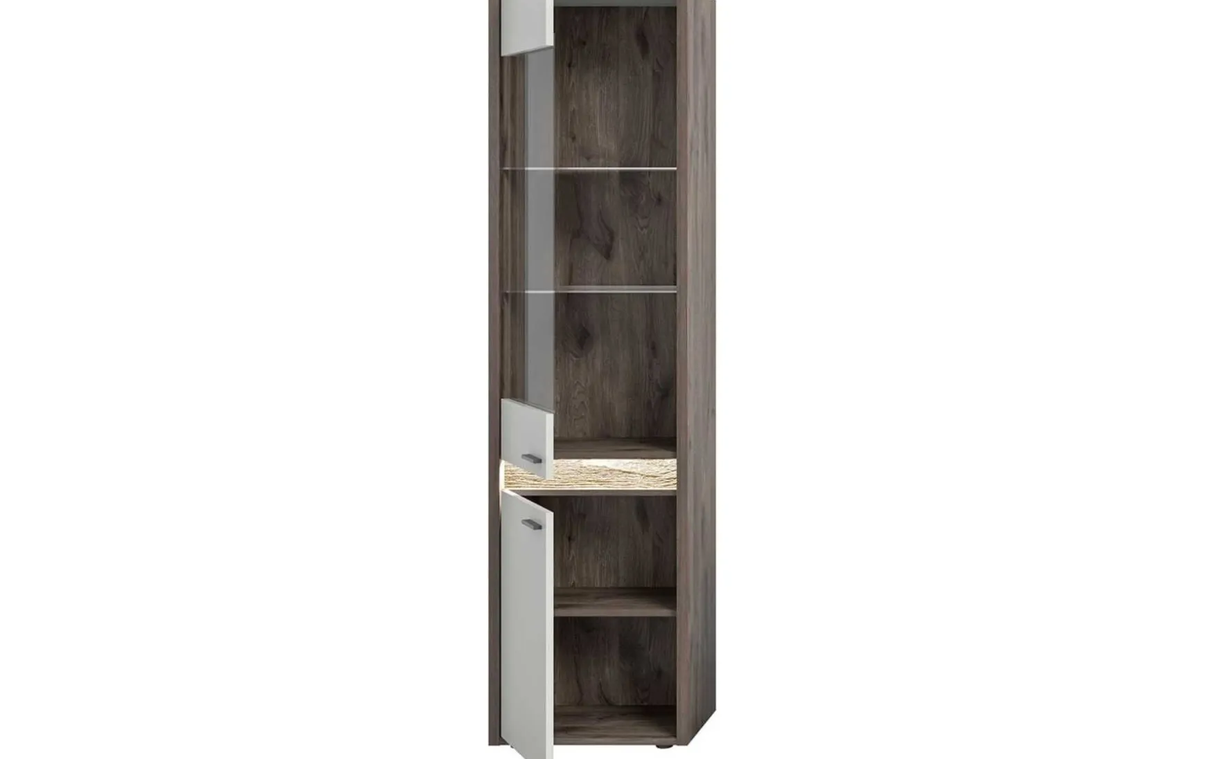 Der Vitrinenschrank bietet eine durchdachte Innenaufteilung, die Ihnen Flexibilität bei der Nutzung ermöglicht: