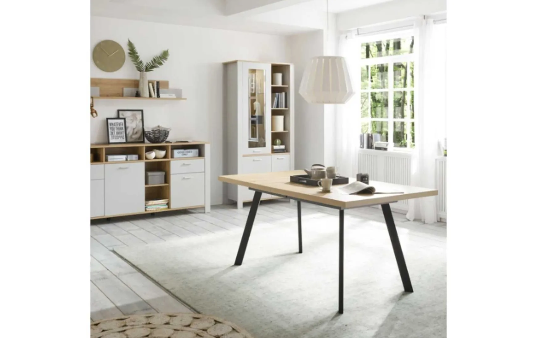 Die Vitrine im angesagten Landhausstil überzeugt mit einem spannenden Farbmix aus kühlem Kreidegrau und warmer Asteiche und verspricht eine Menge offenen und verdeckten Stauraum. Die Türen sind mit einer komfortablen Softclose Technik ausgestattet, sodass sie sich mühelos und geräuschlos schließen lassen.