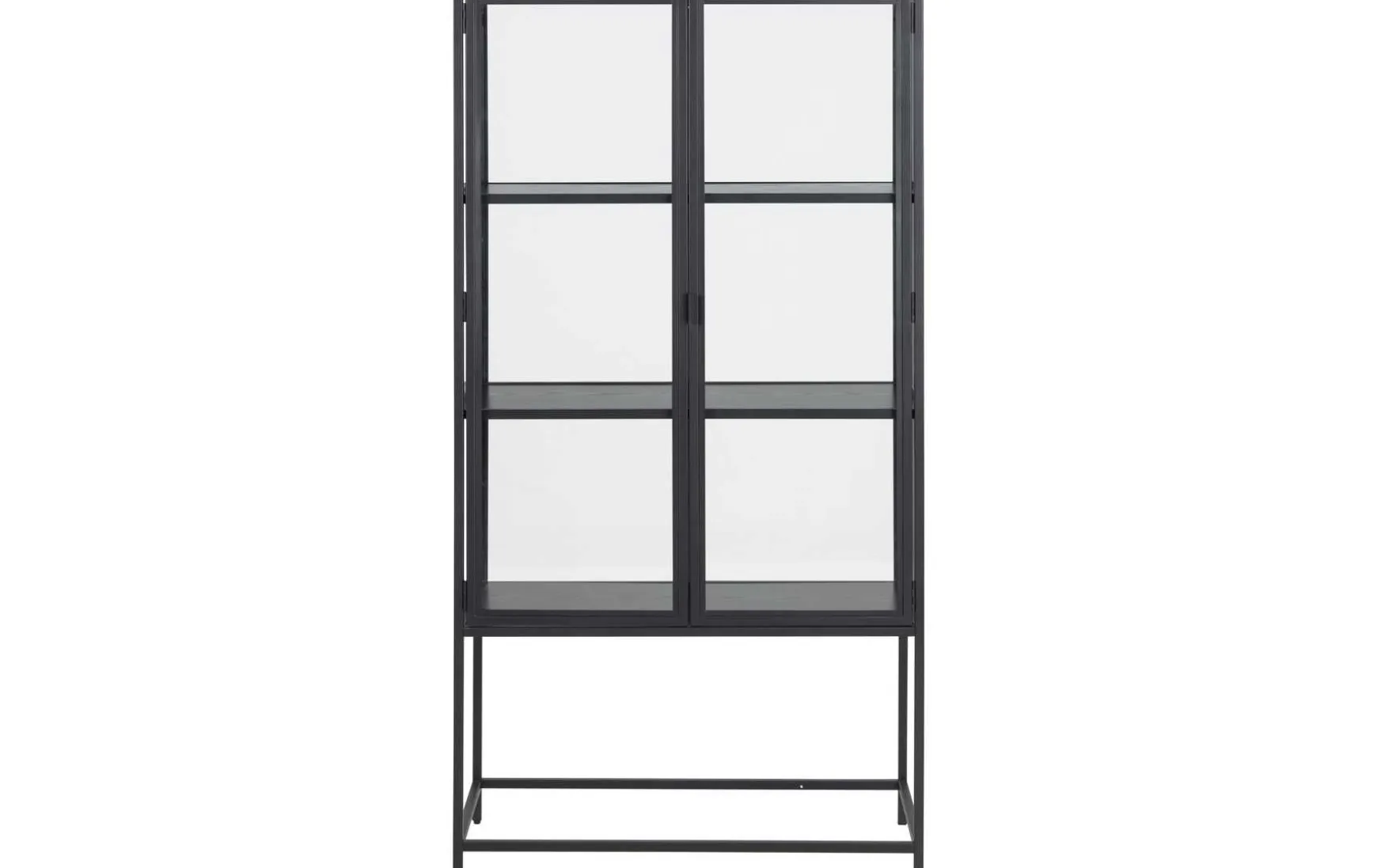 Diese moderne Vitrine in Esche Schwarz Dekor überzeugt durch ihr klares, zeitgemäßes Design und eine elegante Farbgebung. Das pulverbeschichtete Metallgestell in Schwarz verleiht der Vitrine Stabilität und einen industriellen Akzent, der sich harmonisch in moderne Wohnkonzepte einfügt. Mit einer Höhe von ca. 150 cm bietet sie ausreichend Platz zur stilvollen Präsentation von Deko, Geschirr oder Sammlerstücken. Die drei Einlegeböden sorgen für eine übersichtliche Aufteilung und flexible Nutzungsmöglichkeiten. Ideal für Wohn- oder Essbereiche, in denen Design und Funktionalität gefragt sind.