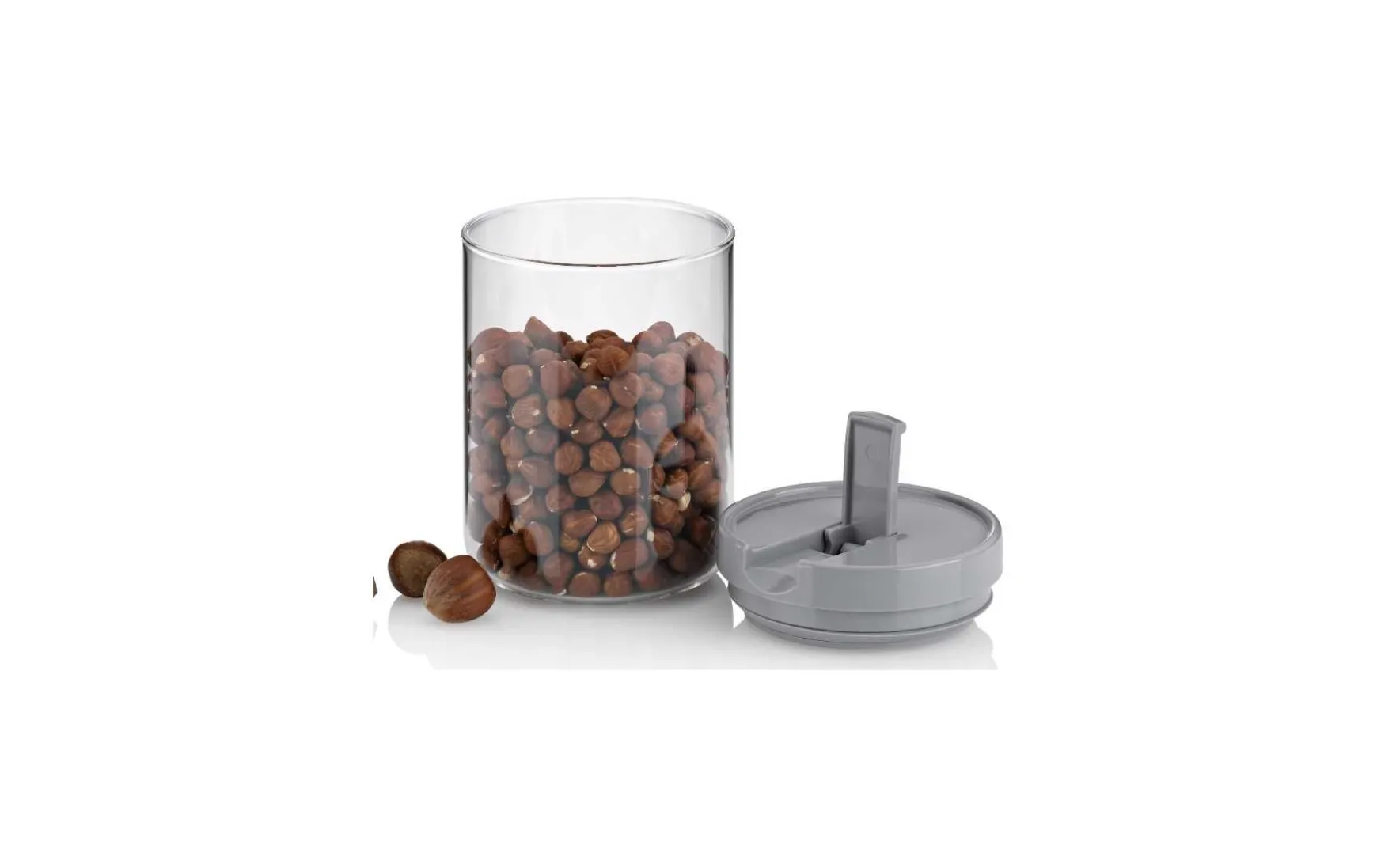 - Vorratsdose aus Glas mit hellgrauem Deckel
