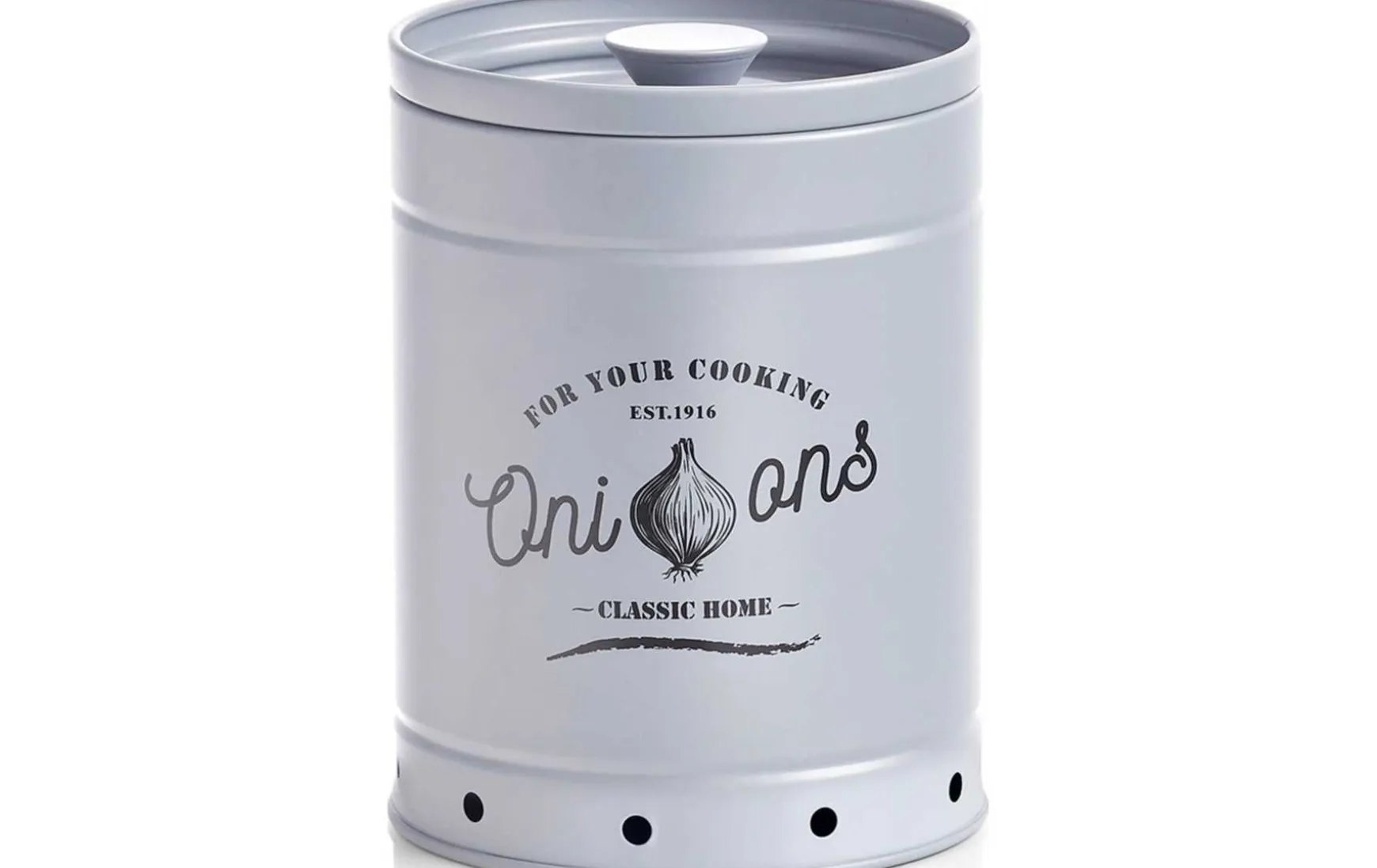 Diese Zwiebel-Vorratsdose eignet sich hervorragend um die vielseitig einsetzbare Zwiebel zu lagern. An Ihre Lagerung stellt das Gemüse allerdings Ansprüche: Für eine längere Lagerung muss die Zwiebel dunkel, trocken und möglichst kühl aufbewahrt werden. Mit dieser Vorratsdose erfüllen Sie ganz leicht die Wünsche des Gemüses und holen sich gleichzeitig einen schönen Dekorartikel nach Hause. Die graue Vorratsdose ist mit Luftlöchern ausgestattet, um den nötigen Luftaustausch zu ermöglichen.