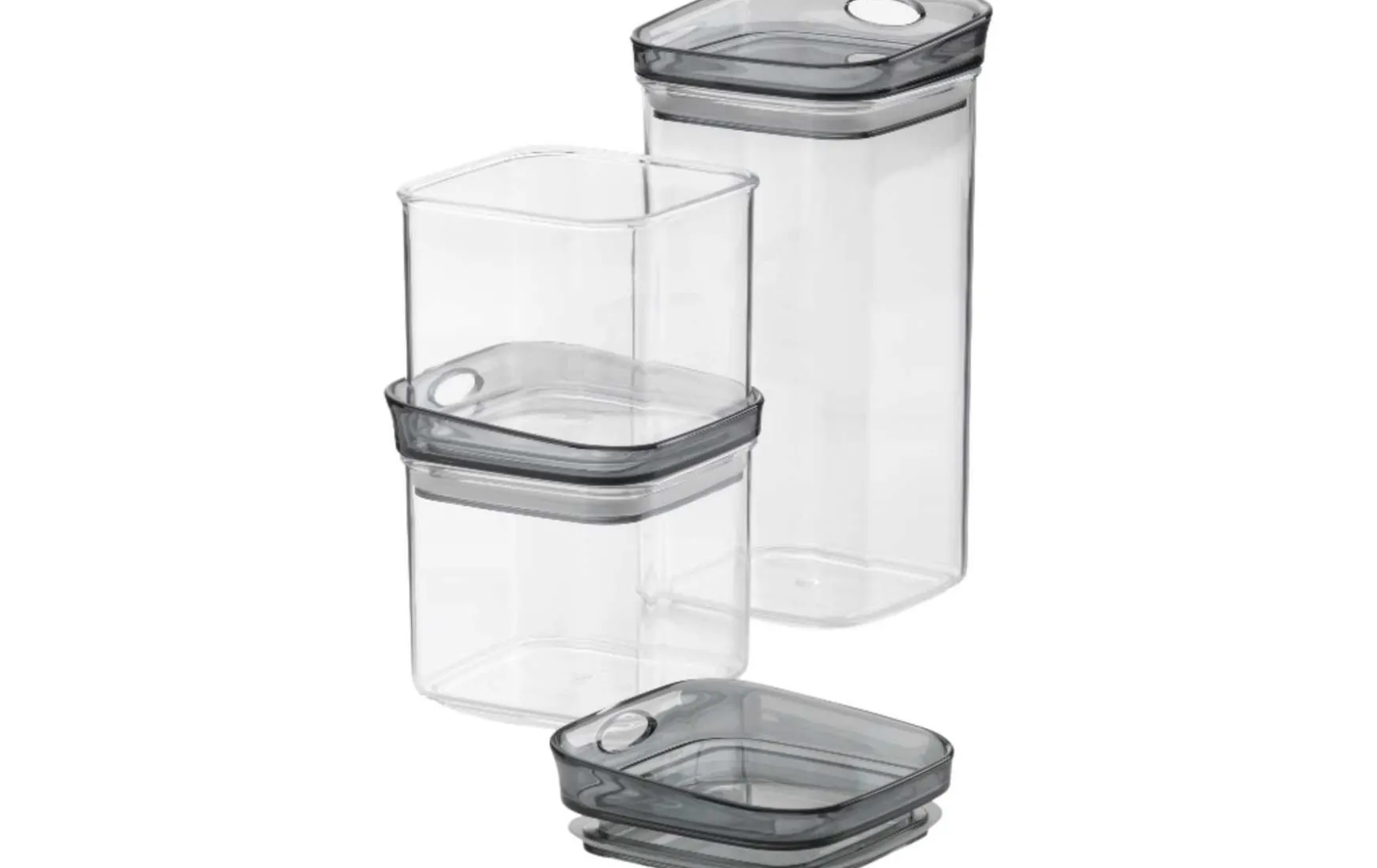Das praktische, stapelbare Vorratsdosen Set aus Kunststoff. Diese transparente Vorratsdose ist eckig und es gibt sie in 4 verschiedenen Größen einzeln zu beziehen. Neu hinzugekommen ist diese dreiteilige Version. Diese Dosen sind ebenfalls transparent. Auffällig ist jedoch bei dieser Set-Variante der Grauschimmer bei den Deckeln. Der besondere Clou für eine platzsparende Aufbewahrung: Diese Dosen lassen sich luftdicht verschließen und stapeln.