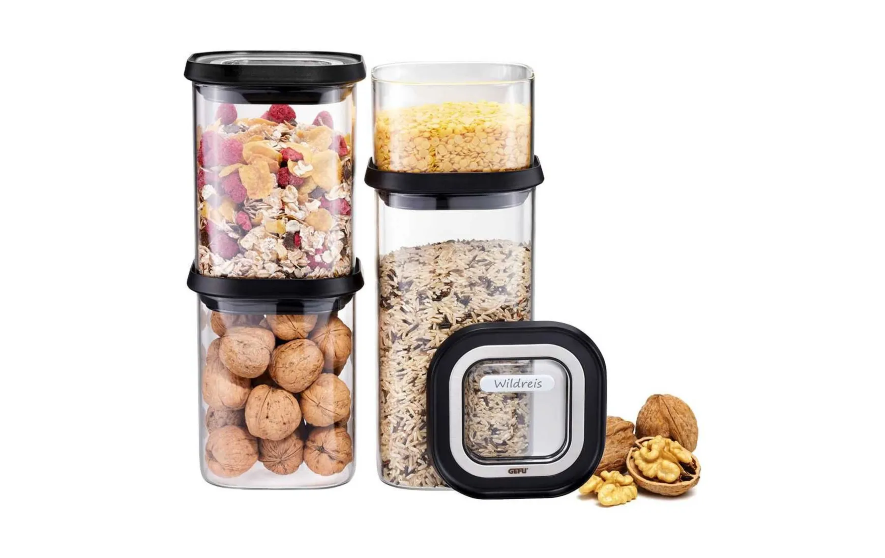 Der Deckel schließt luftdicht und hält das Aroma – von aromatischen Gewürzen, über leckere Müslis bis hin zu Nudeln.