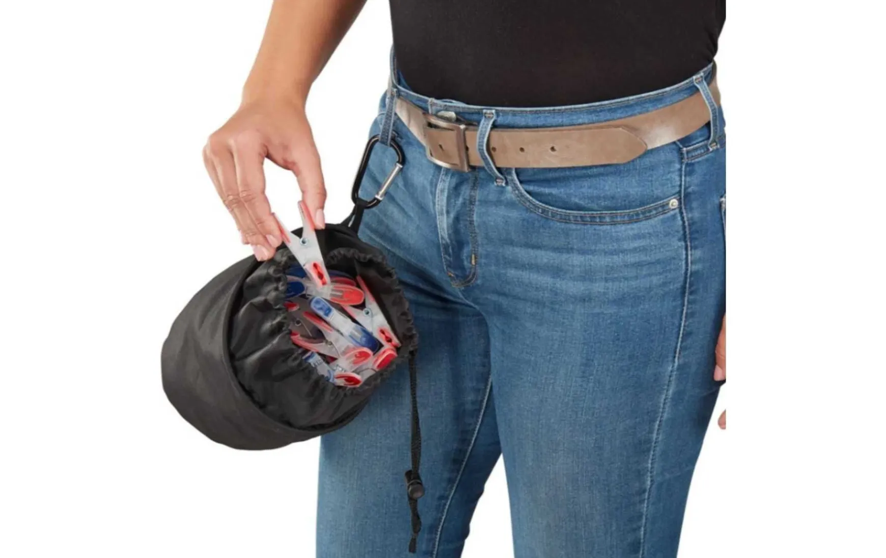 Wer einen Wäscheklammerbeutel von Leifheit kauft, der hat alle Klammern stets griffbereit. Denn in diesem können dank des großen Füllvolumens bis zu 100 der kleinen Helfer verstaut werden. Diese sind dort vor Umwelteinflüssen wie Regen geschützt. Denn der engmaschig gewebte Stoff ist besonders hochwertig und schützt vor eindringender Feuchtigkeit sowie Korrosion. Falls doch mal Regenwasser in den Beutel gelangt, bleibt es dank dem wasserdurchlässigen Boden nicht im Beutel stehen. Mithilfe des stabilen Karabinerhakens kann der Wäscheklammerbeutel einfach an der Wäschespinne oder dem Wäscheständer befestigt werden. Für leichtes Verschließen des Beutels sorgt eine Zugkordel. So sind die Wäscheklammern vor Staub und Schmutz sicher.