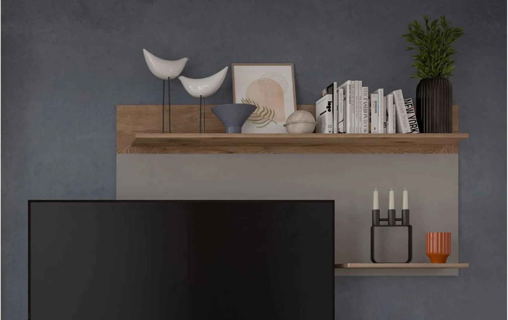 Dieses Wandboard verkörpert mit seinem modernen Design und der hellgrauen Farbgebung sowohl Eleganz als auch Funktionalität. Dieses stilvolle Möbelstück hat eine Breite von 140 cm, eine Höhe von 70 cm und eine Tiefe von 22 cm, was es zu einem idealen Ort für Bücher, Dekorationsartikel oder auch alltägliche Gegenstände macht. Gefertigt aus hochwertiger Holznachbildung, bietet dieses Wandboard eine beeindruckende Langlebigkeit und Pflegeleichtigkeit. Das hängende Design ermöglicht eine freie Fussbodenfläche, was besonders in kleineren Räumen oder in Bereichen mit begrenztem Platzangebot von Vorteil ist.