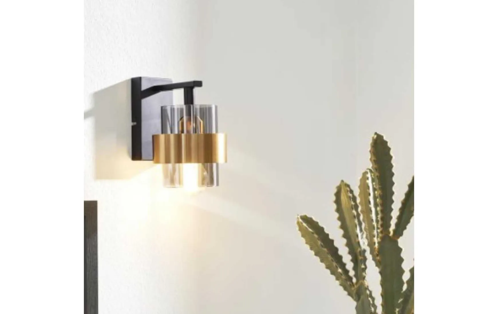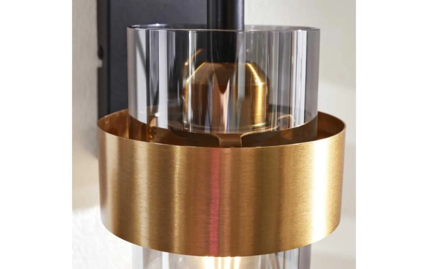 Diese Wandleuchte begeistert mit ihren hochwertigen Materialien, der erstklassigen Verarbeitungsqualität sowie modernen Designmerkmalen, die ihr und auch ihrer Umgebung das gewisse Etwas verleihen. Sie kombiniert puristisch mattschwarzes Metall mit stilvoll rauchfarbenem Glas. Das optische Highlight bildet der Messingring – er sorgt für eine betont extravagante Ausstrahlung der Wandlampe. Für den Lampenschirm wird ein Leuchtmittel der Fassung E27 mit einer Leistung von maximal 60 Watt benötigt. Dieses ist nicht im Preis inbegriffen. Der Durchmesser der attraktiven Wandleuchte beläuft sich auf ca. 16,5 cm; ihre Höhe beträgt ca. 20 cm und die Breite liegt bei ca. 13 cm.
